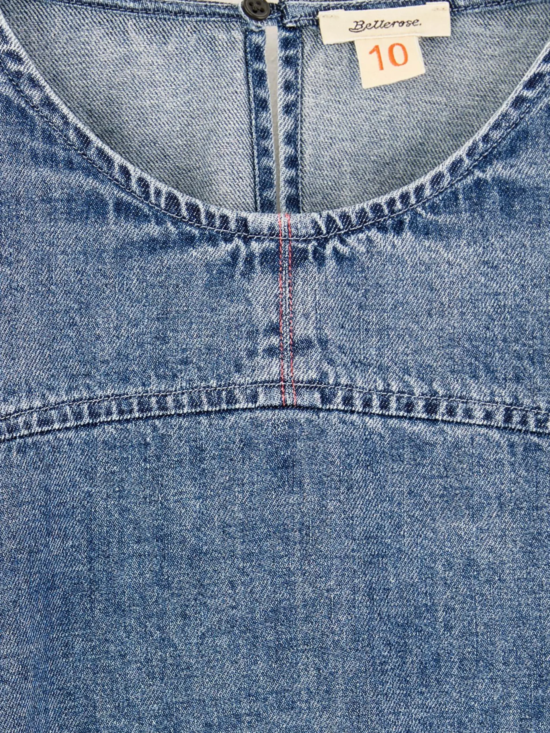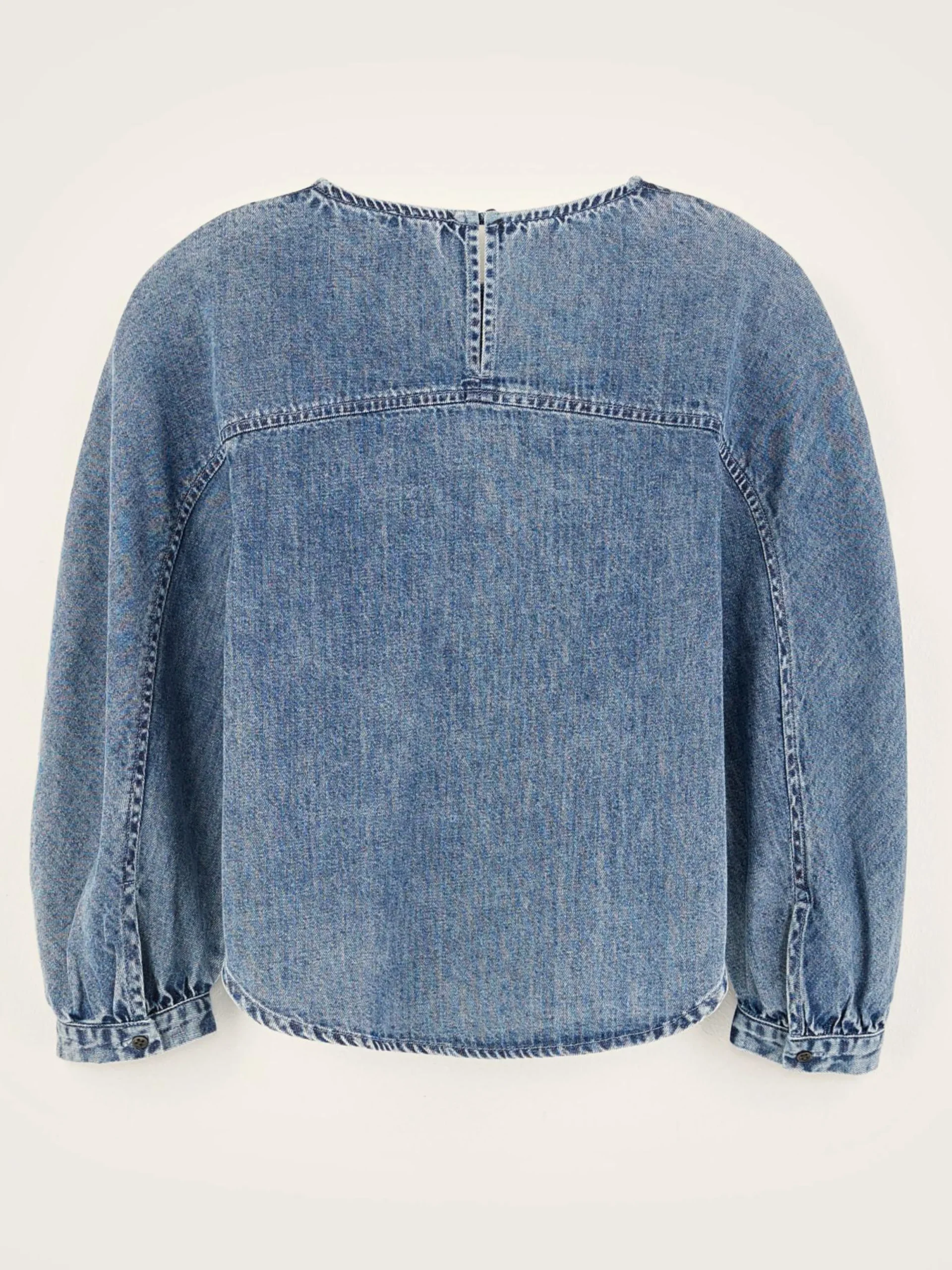 Aansluitende blouse van lichtblauw stone katoendenim.