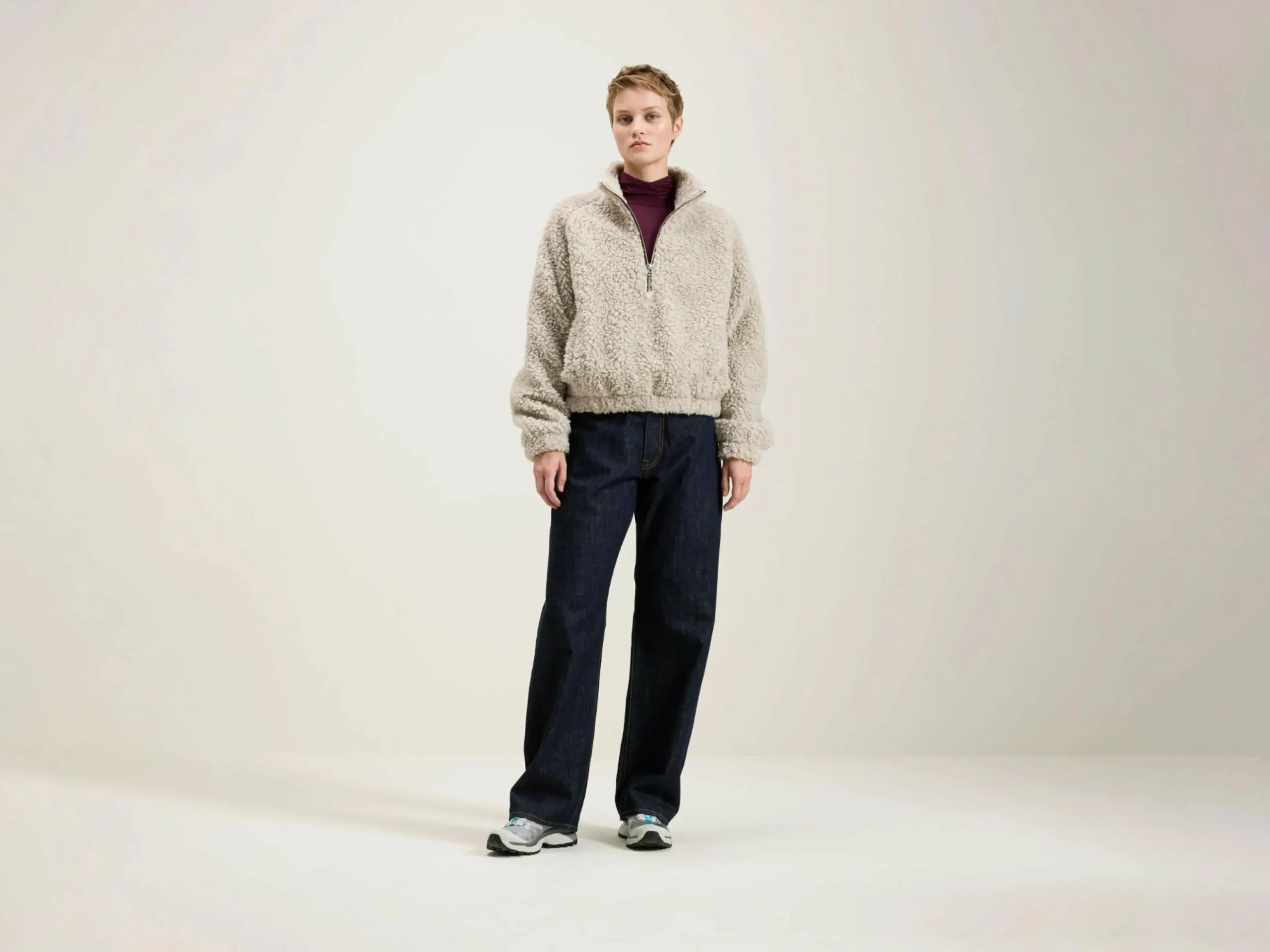 - Opstaande kraag met halve ritssluiting