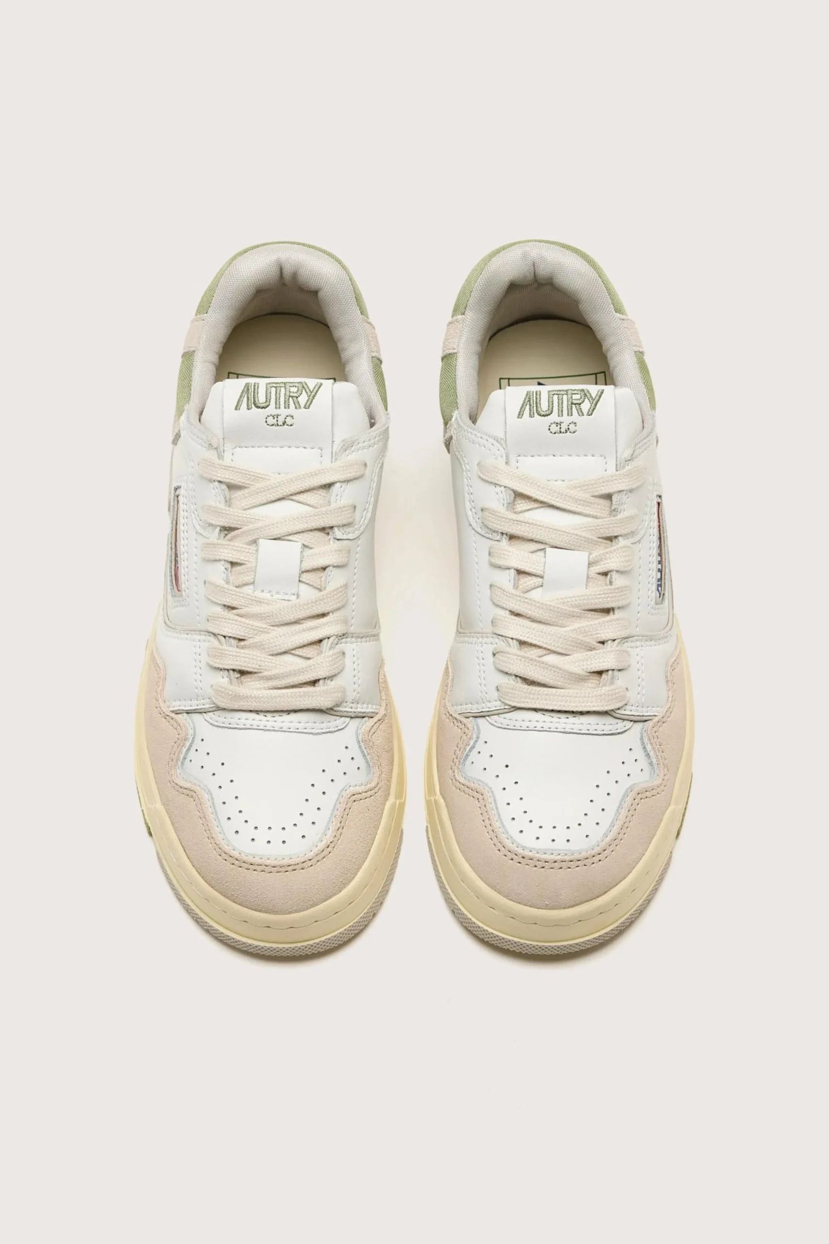 De Autry CLC Low zijn op basketbal geïnspireerde sneakers met een lederen en suède bovenwerk, een gewatteerde kraag van mesh en een verhoogde rubberen zool.