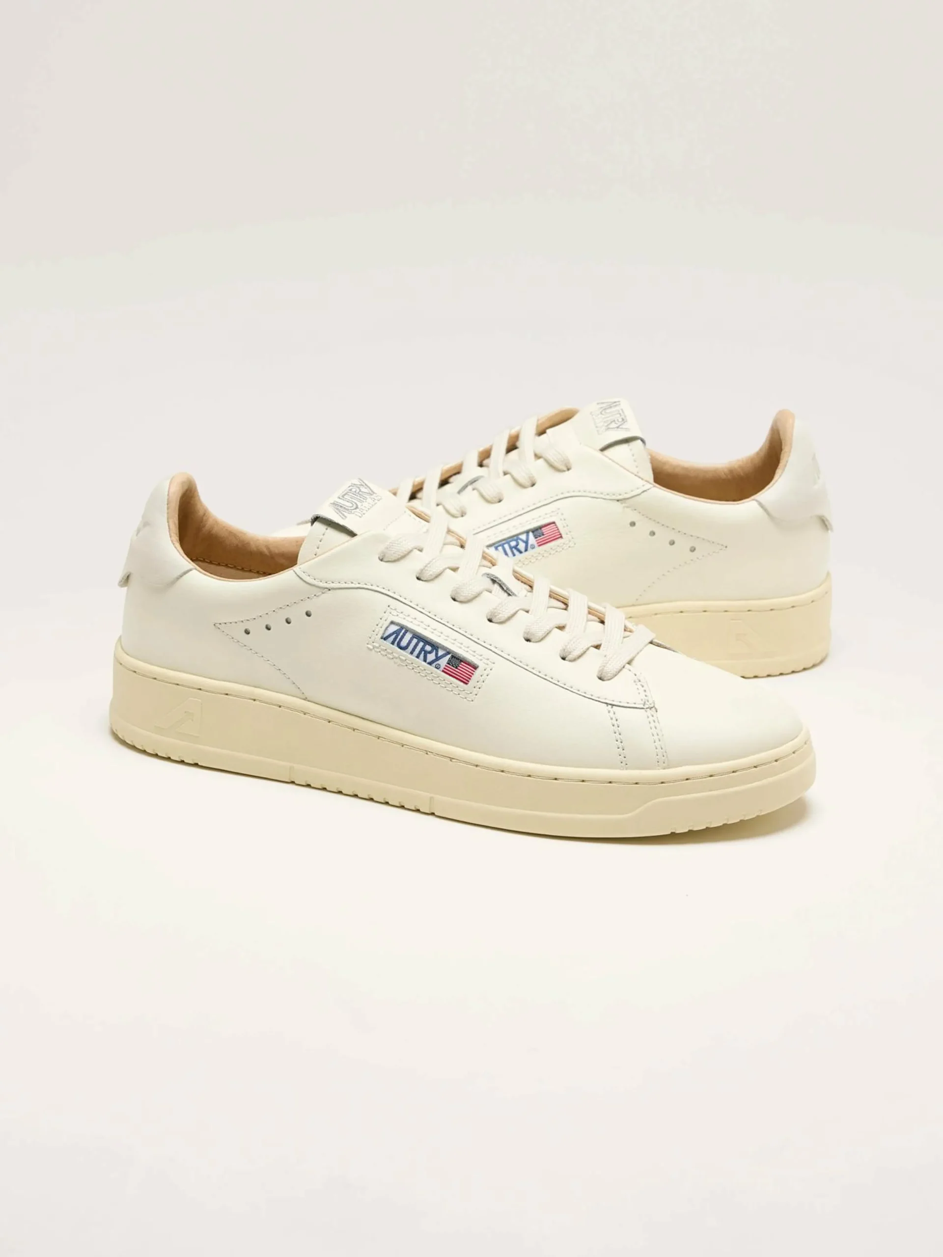 De Autry Dallas Low sneakers hebben een laag, compact profiel gemaakt van wit-op-wit zacht nubuckleder.