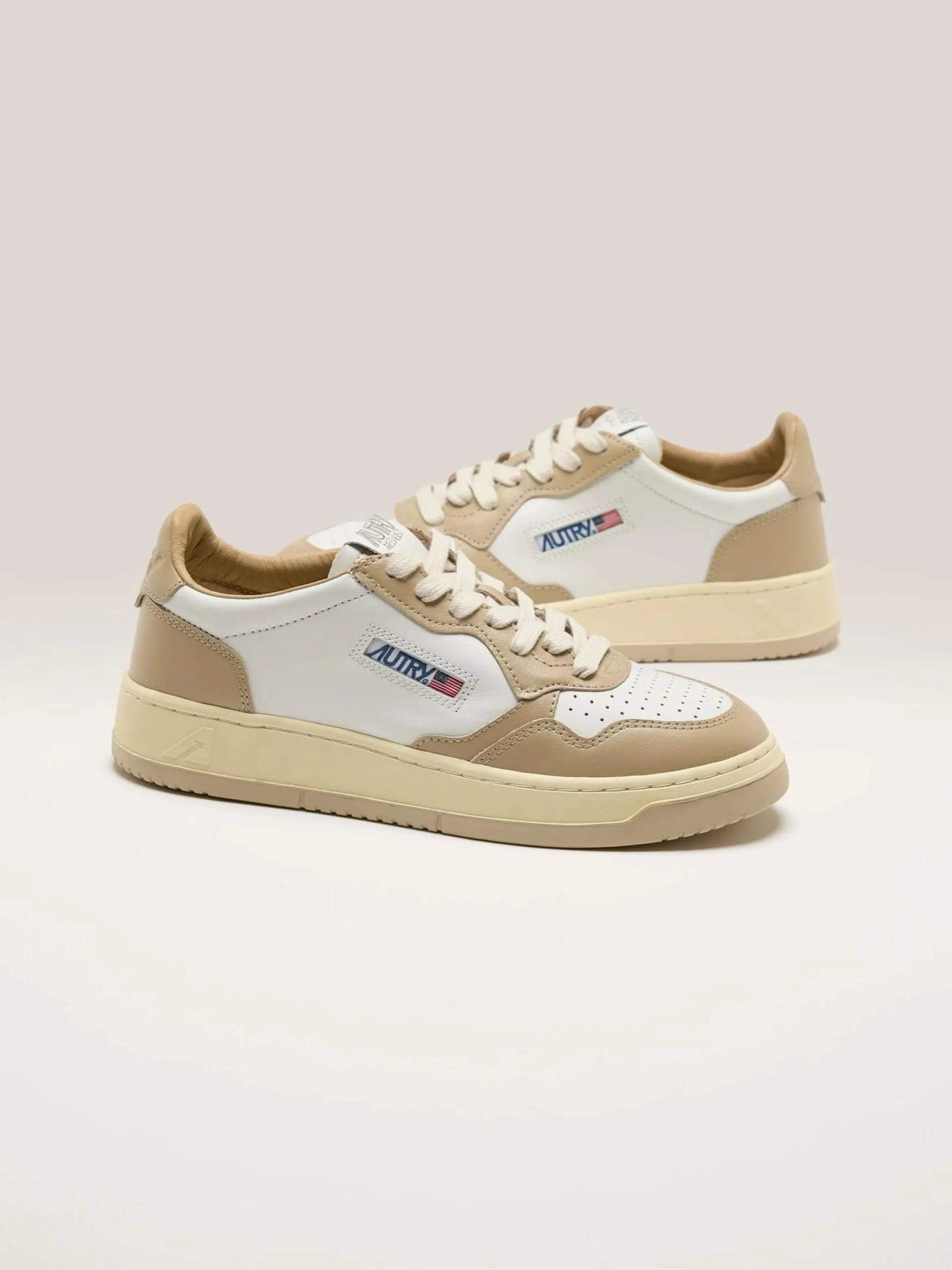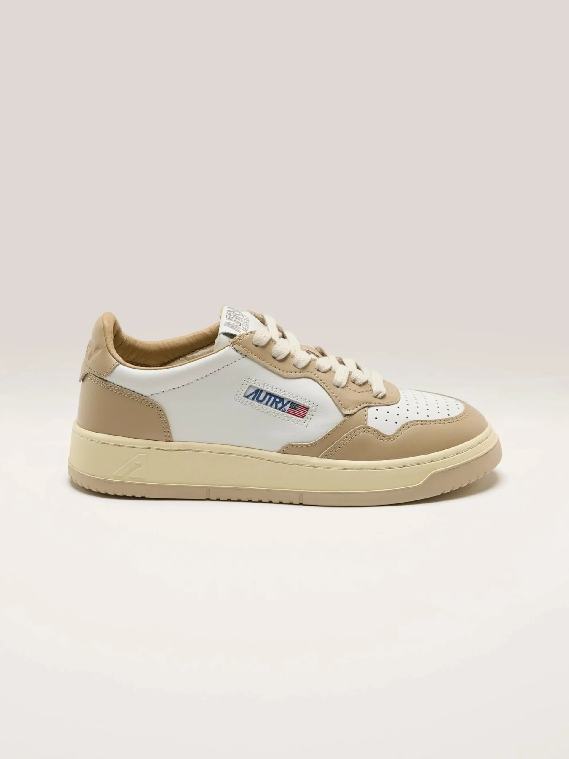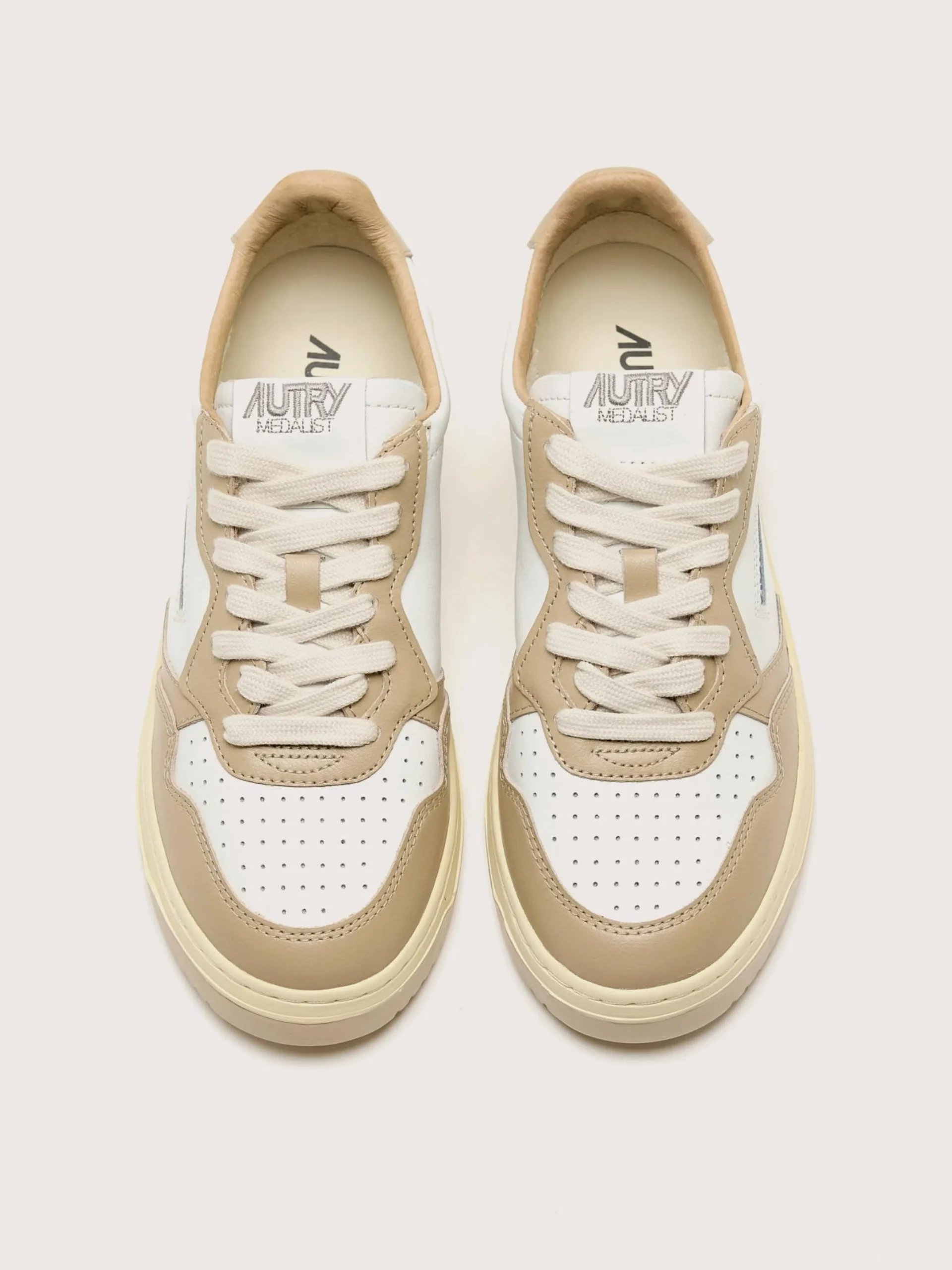 De Autry Medalist Low Bicolor sneakers hebben een soepel wit en peper lederen bovenwerk met een geperforeerde neus en een rubberen zool in dezelfde kleur.