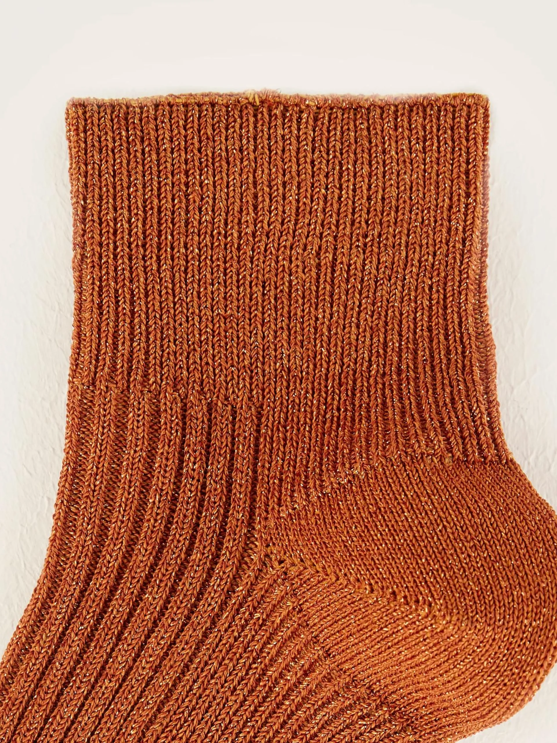 Korte geribde roestbruine sportsokken met een lichte glans.