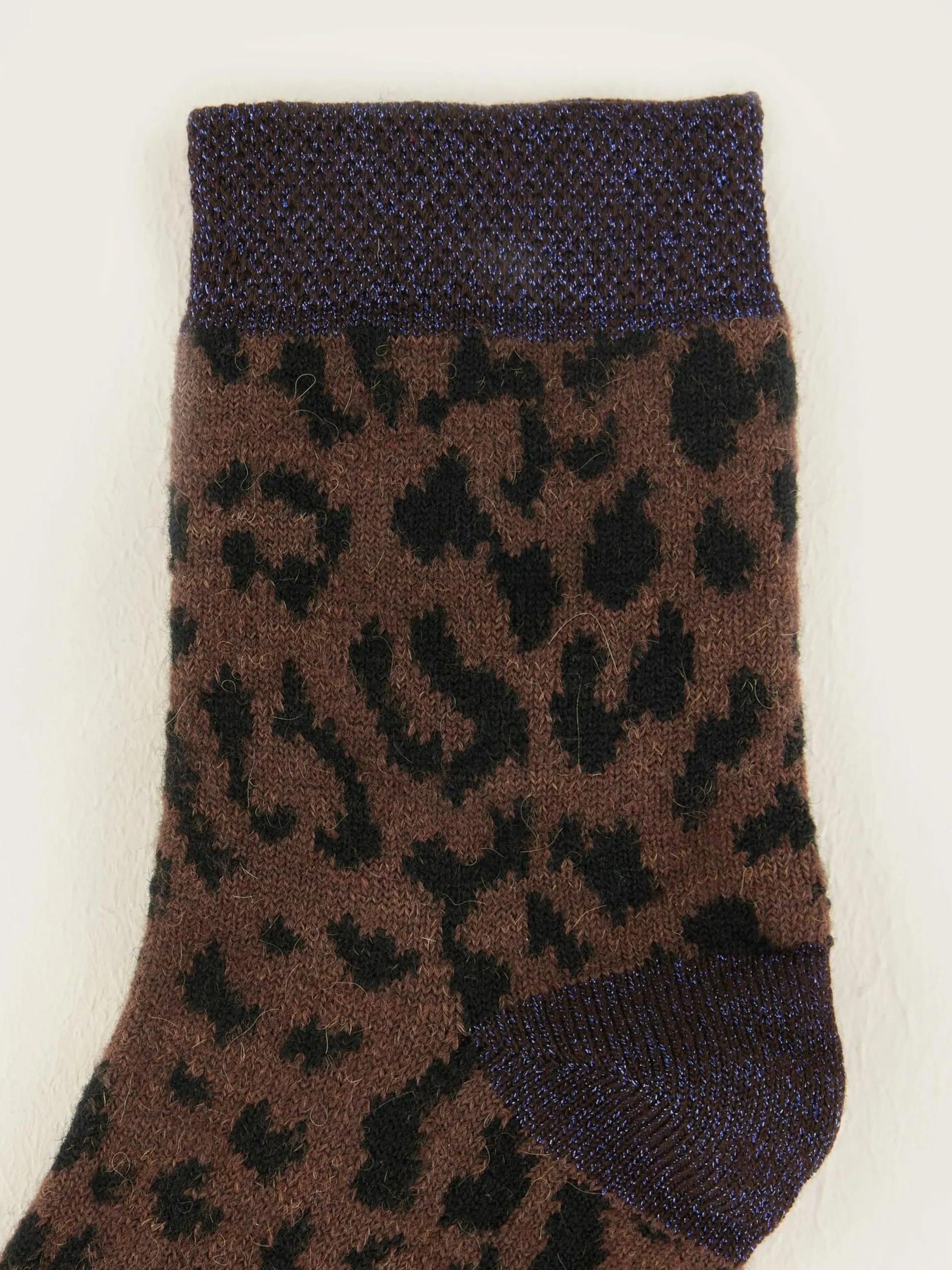 Klassieke sportsokken met luipaardprint en een lichte glans rond de bovenrand, tenen en hiel.