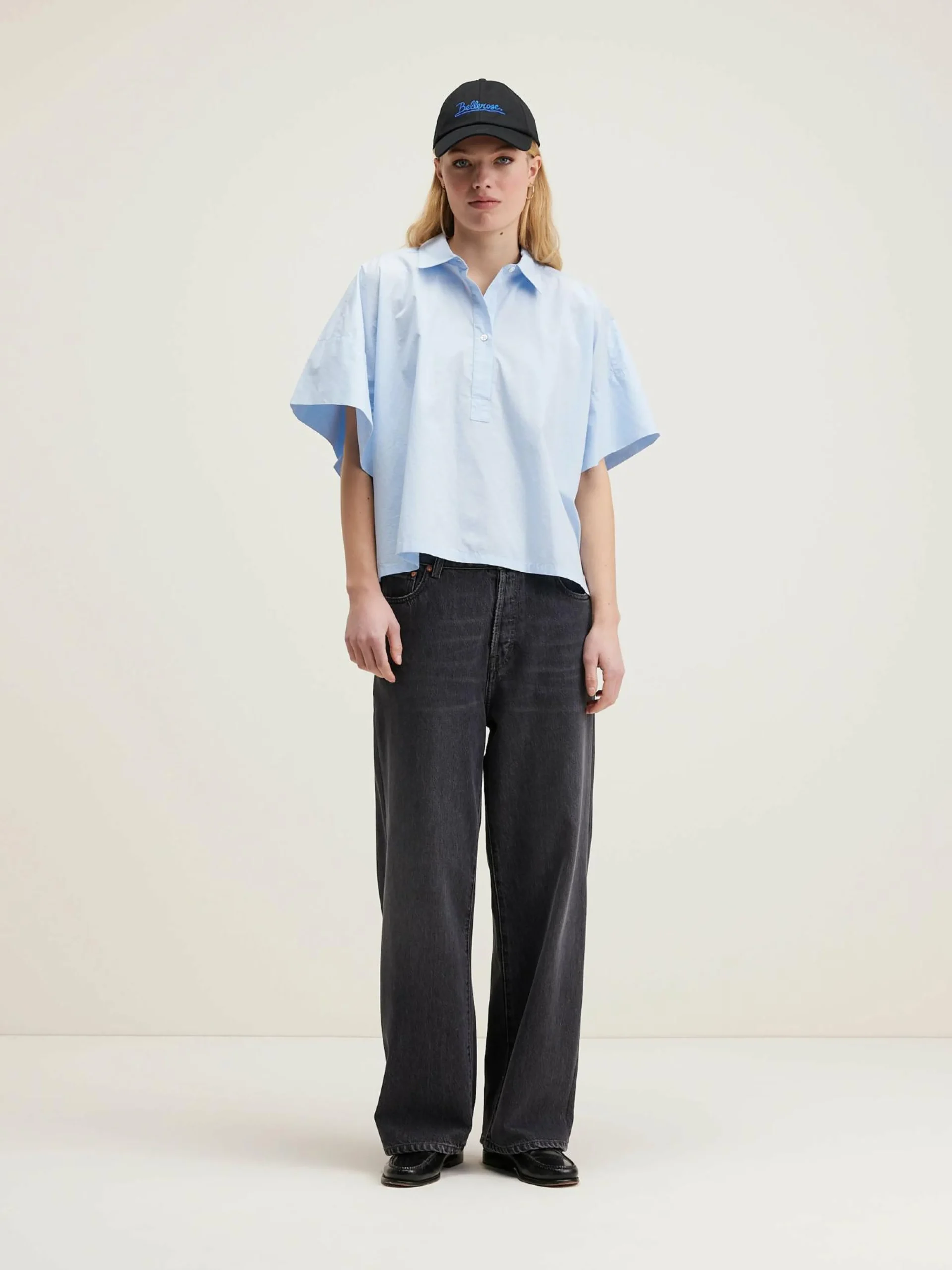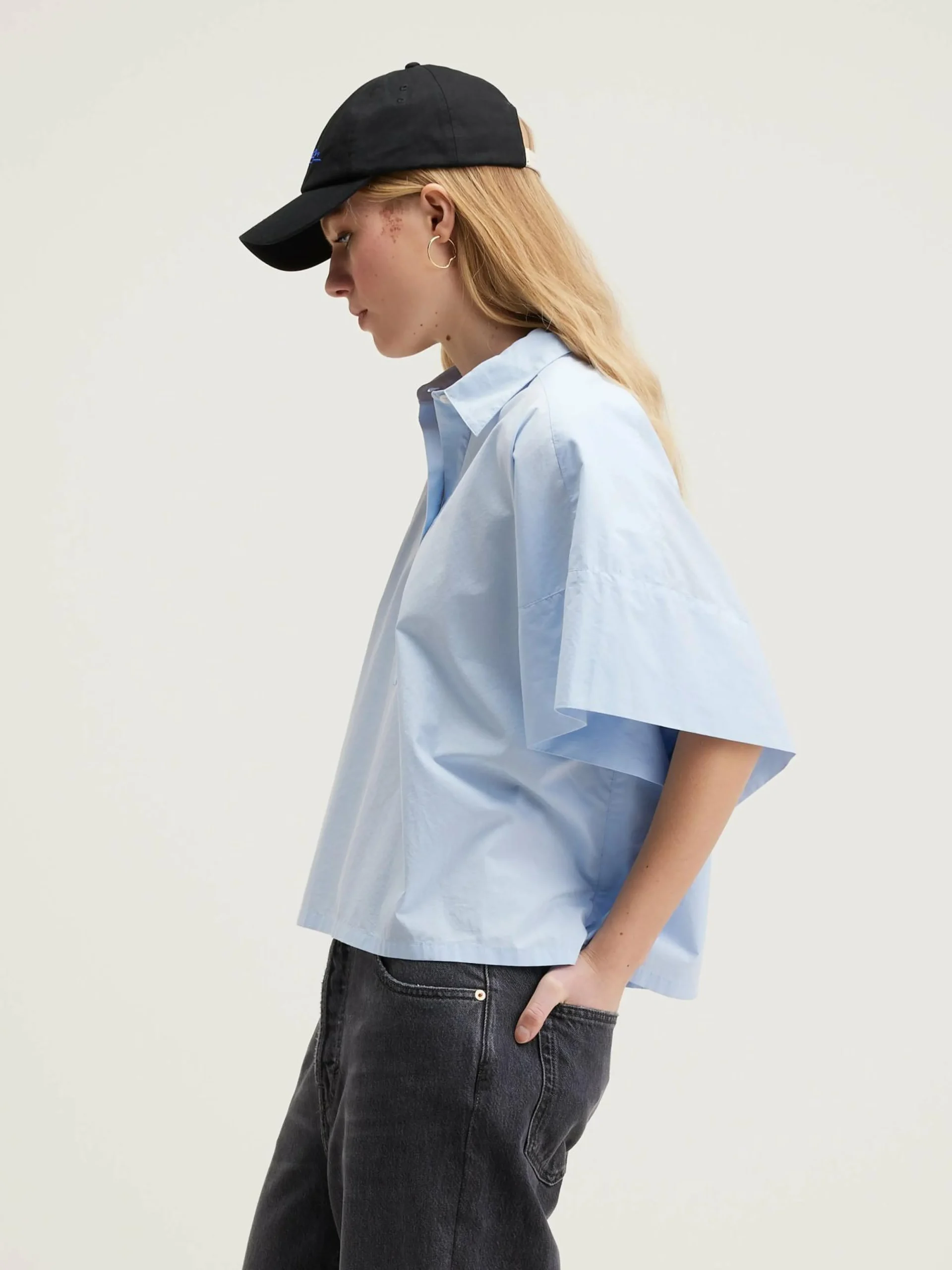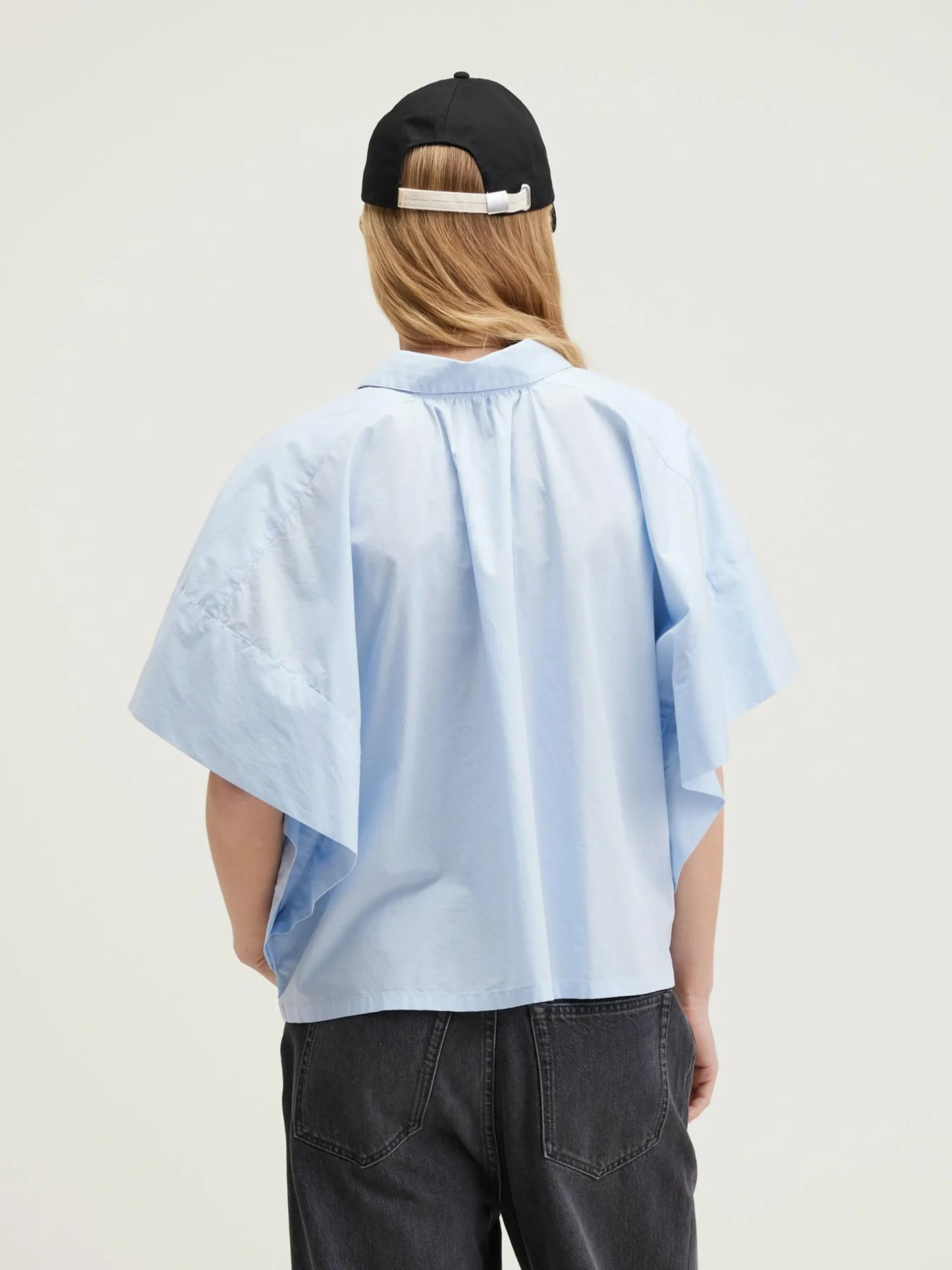 Oversized hemd met korte mouwen van lichtblauw poplinekatoen.