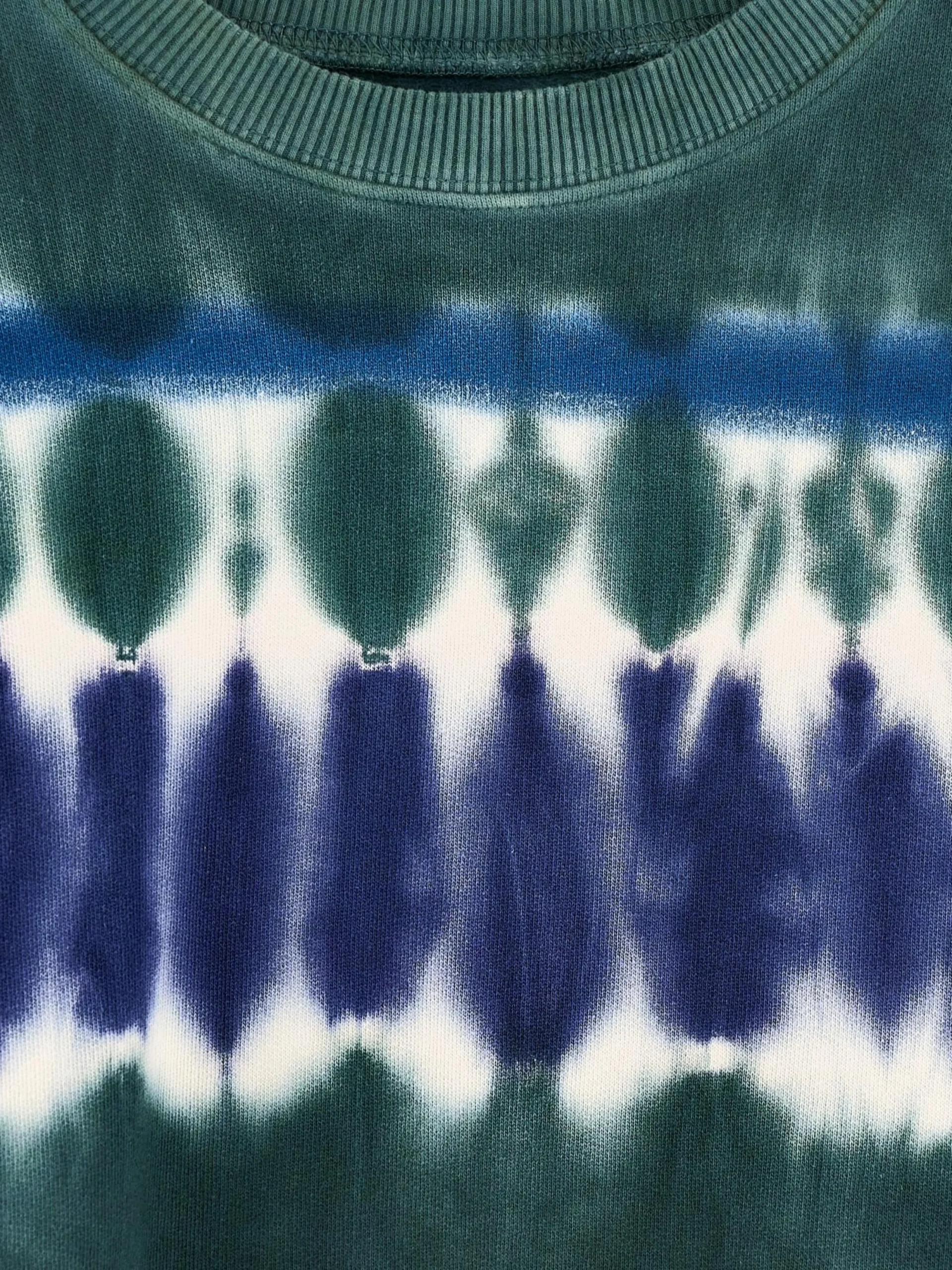 Comfortabel sweatshirt van geborstelde fleece met blauwe en groene tie-dye print.