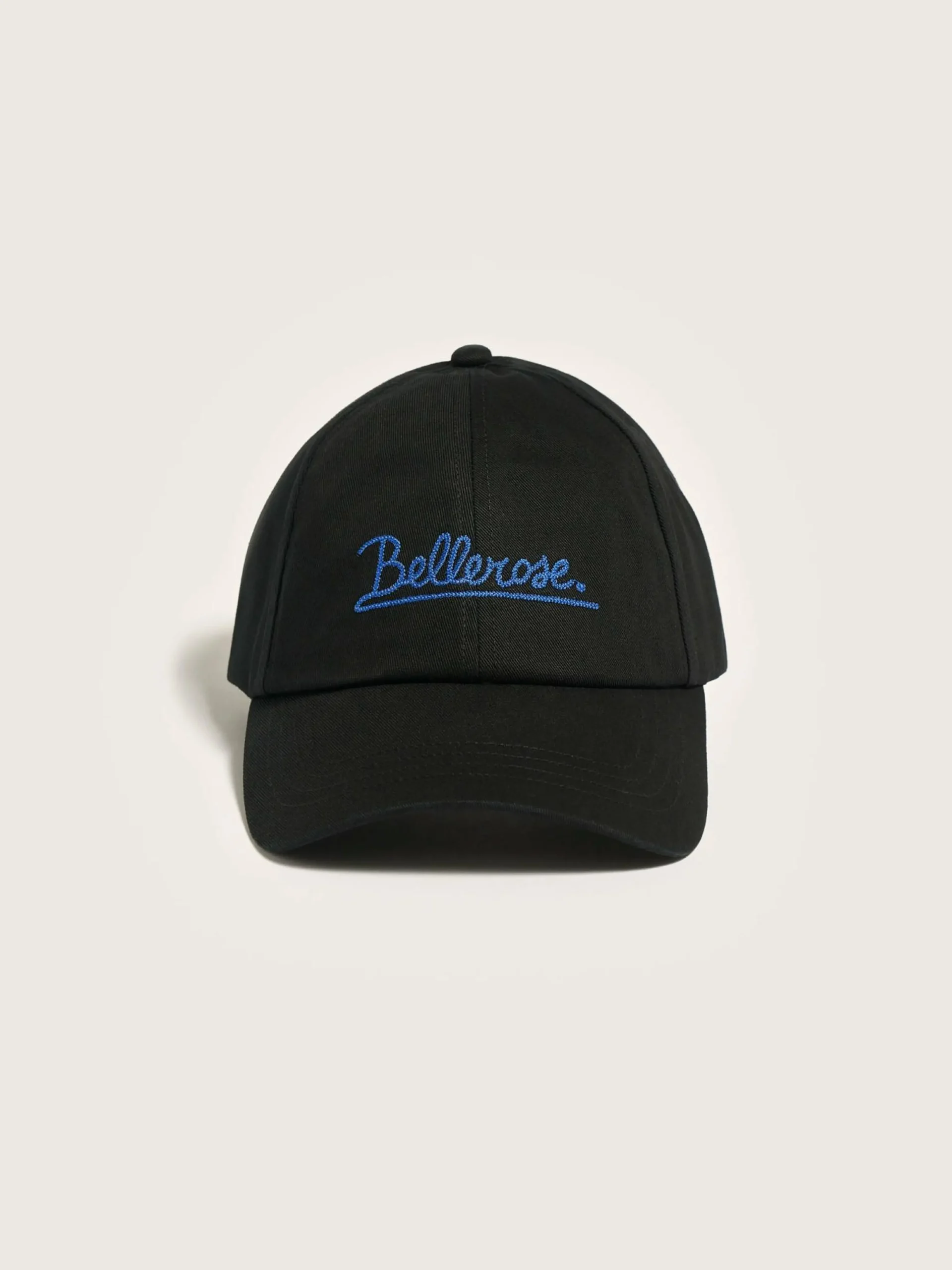 Klassieke 6-panel pet van zwart katoen met Bellerose blauw borduursel op de voorkant.