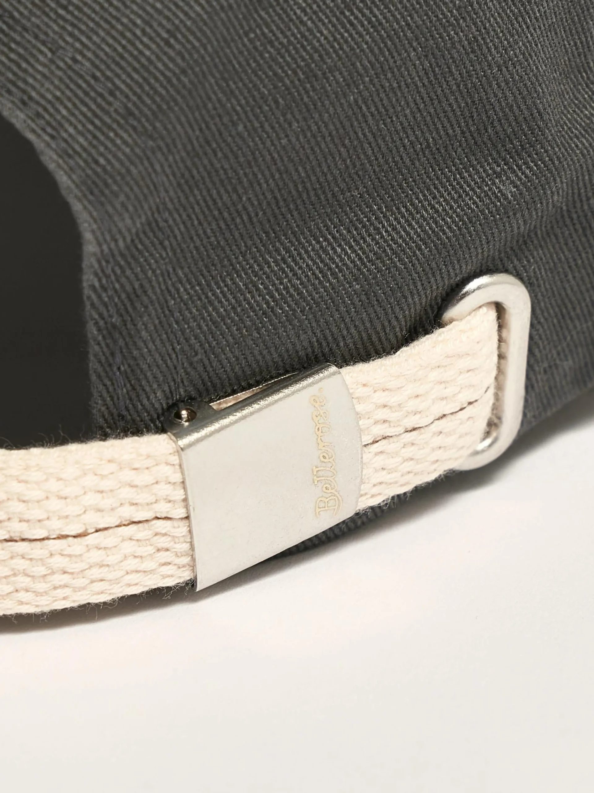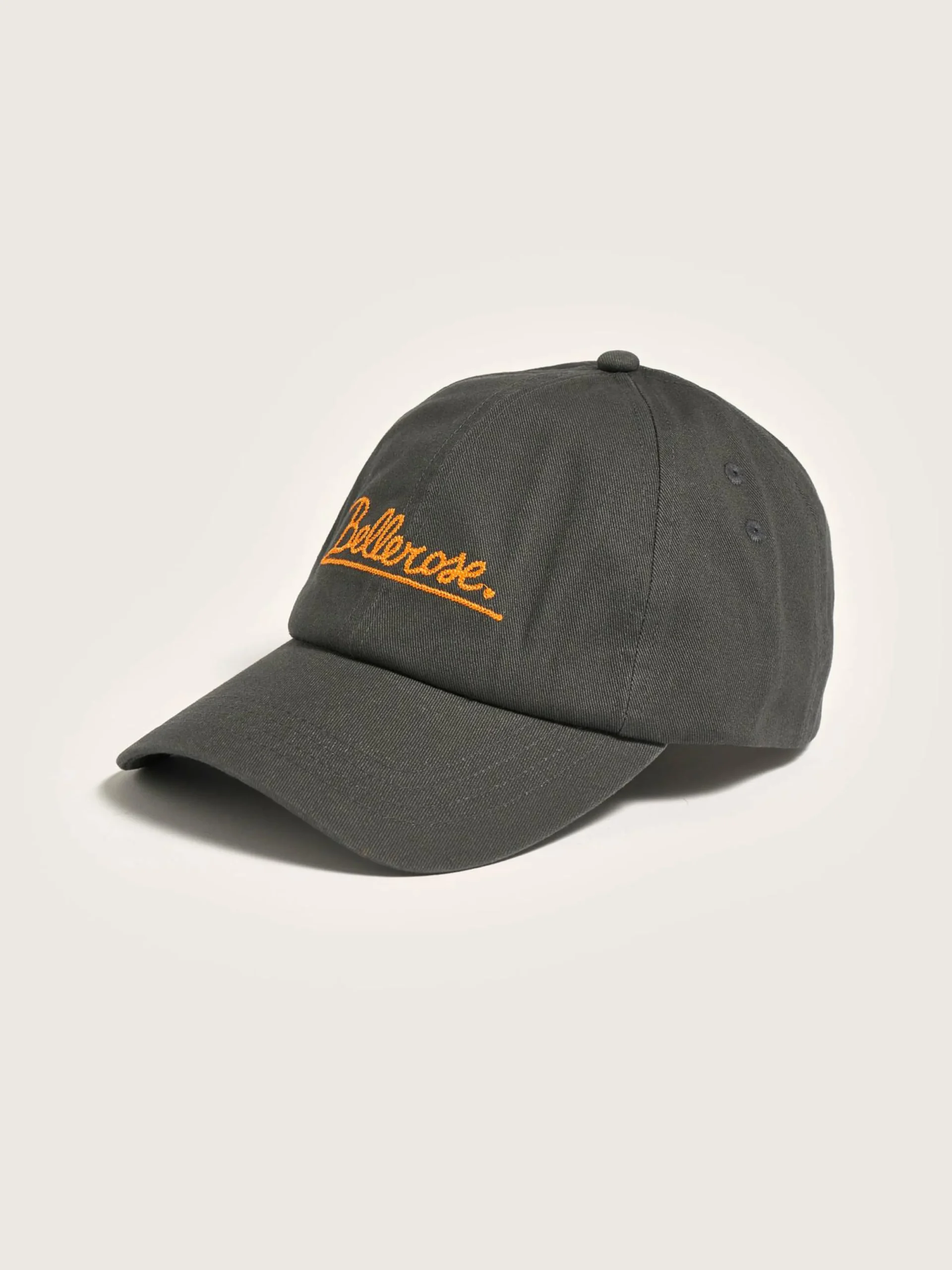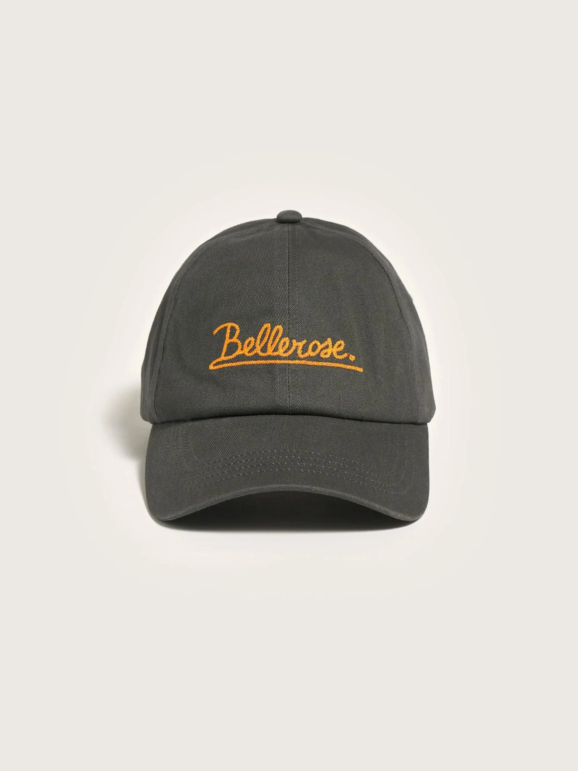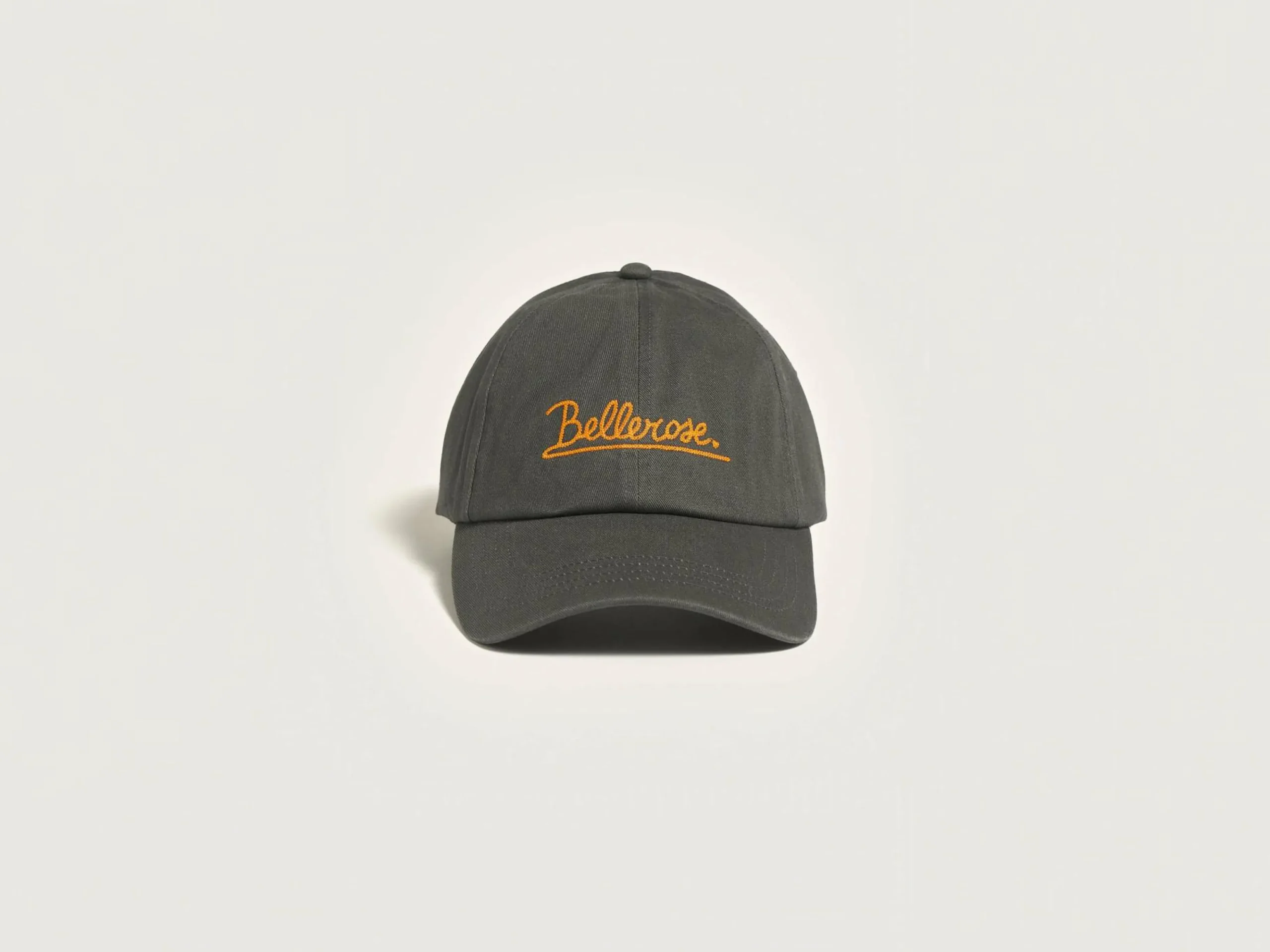 Klassieke 6-panel pet van grijs katoen met oranje Bellerose borduursel op de voorkant.