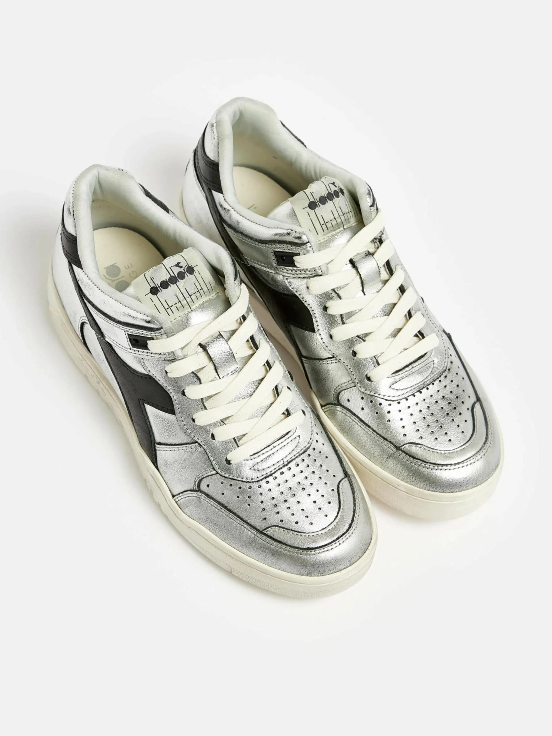 De low-top Diadora B. 560 Used retro op tennis geïnspireerde sneaker heeft een bovenwerk van volnerfleder met een stonewash en wax behandeling.