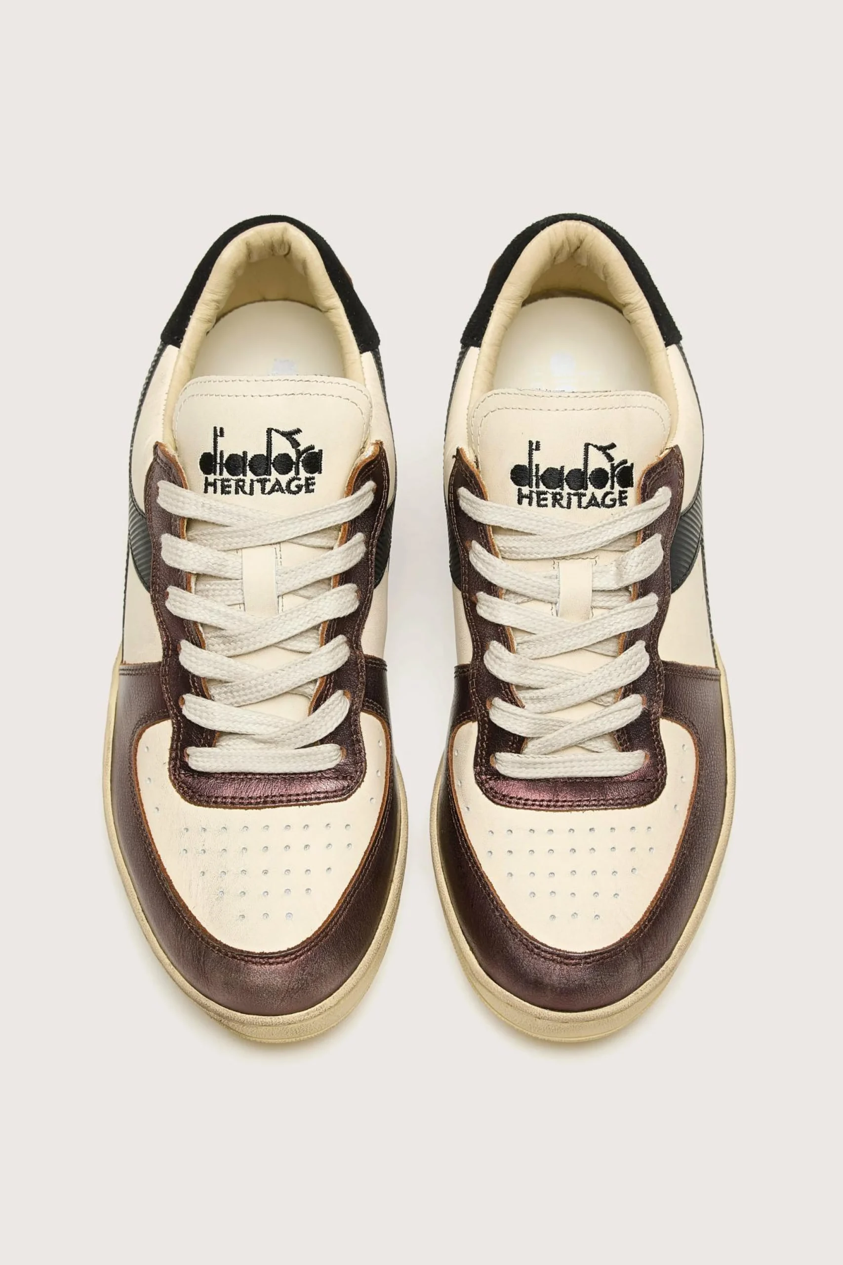 The Diadora Mi Basket Low Metallic Dirty heritage sneakers feature oiled premium full-grain leather with suede, stonewashed and waxed details.