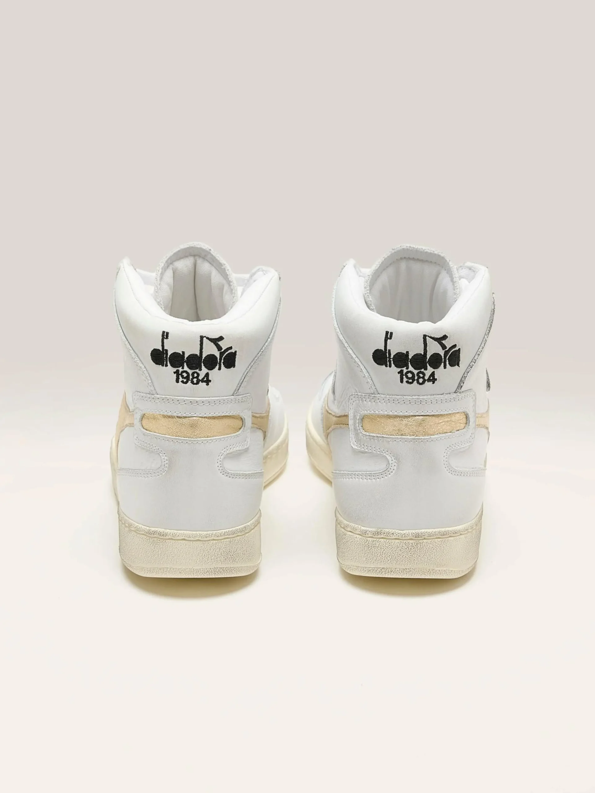 De Diadora Mi Basket Used Heritage high-top sneakers hebben een bovenwerk van volnerflederen met een speciale stonewash behandeling.