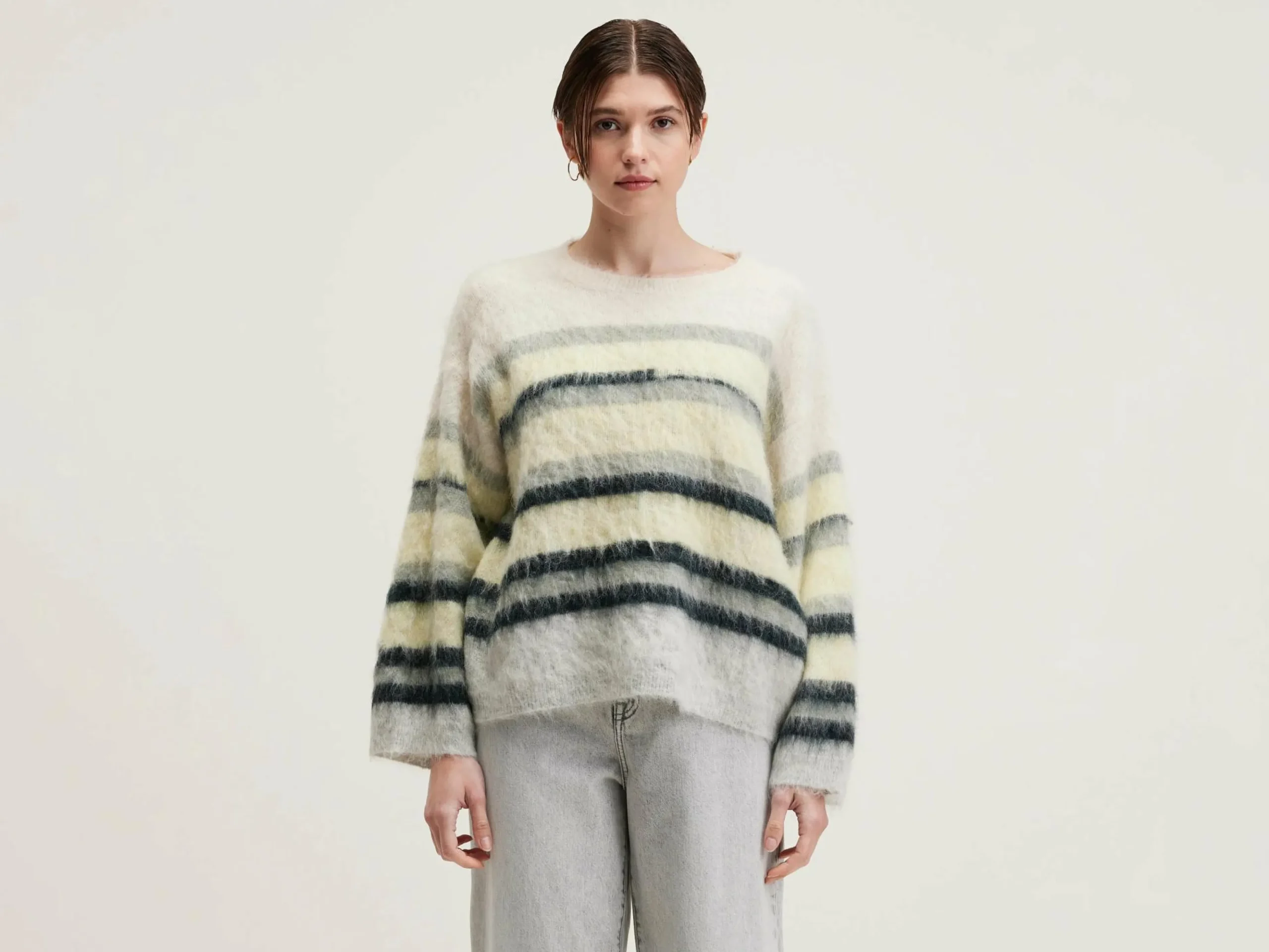 Oversizede trui met onregelmatige strepen, in wolmix.