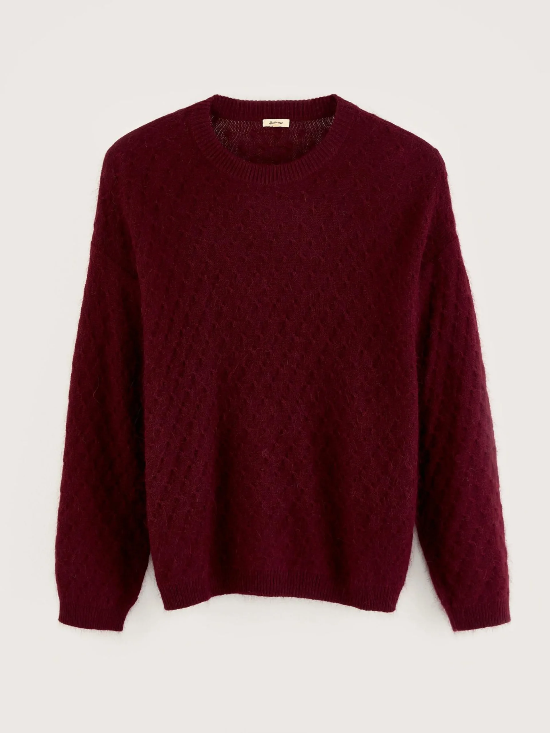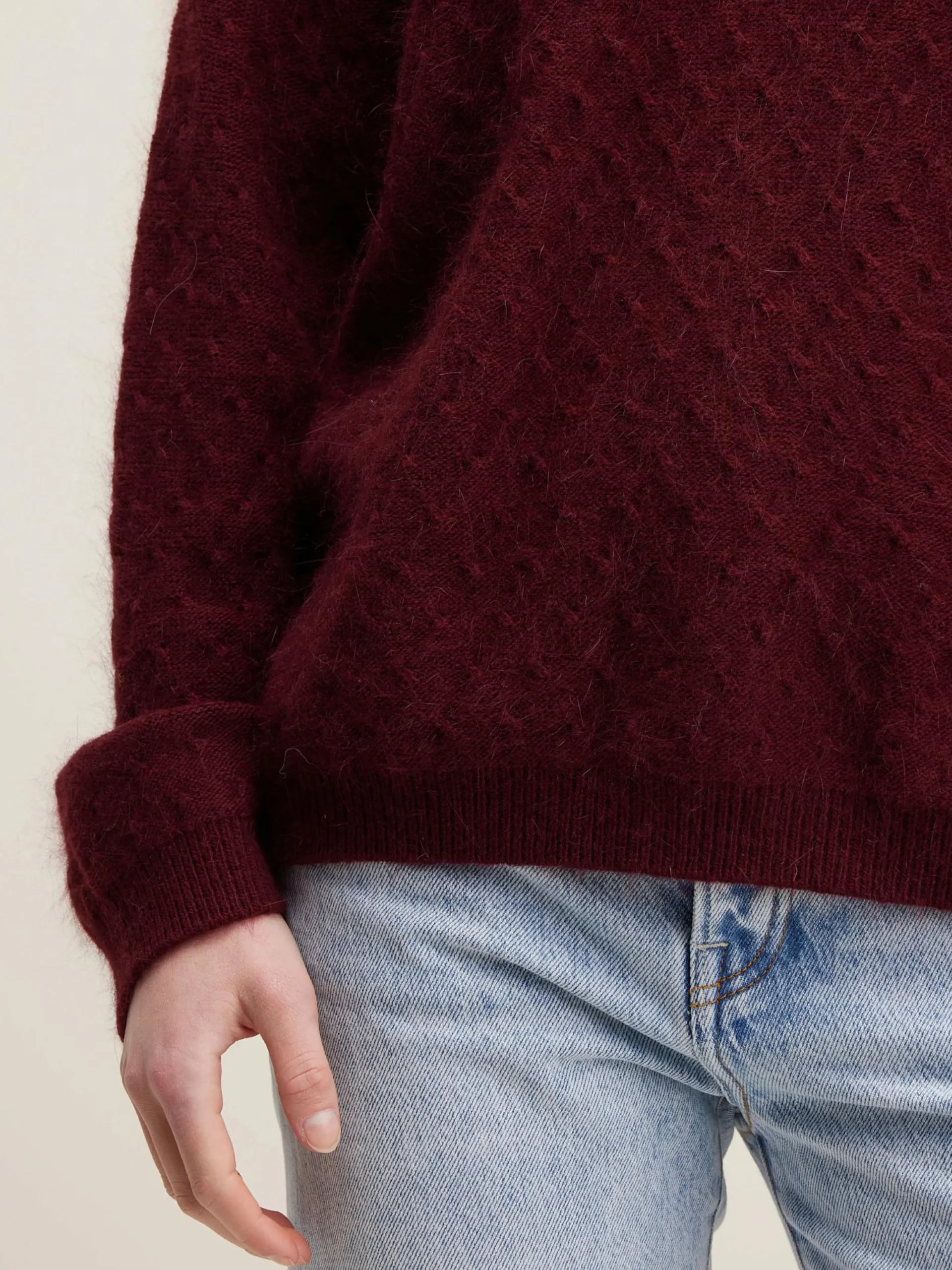 Cuberdonrode, relaxede trui met ronde hals, van angoramix.