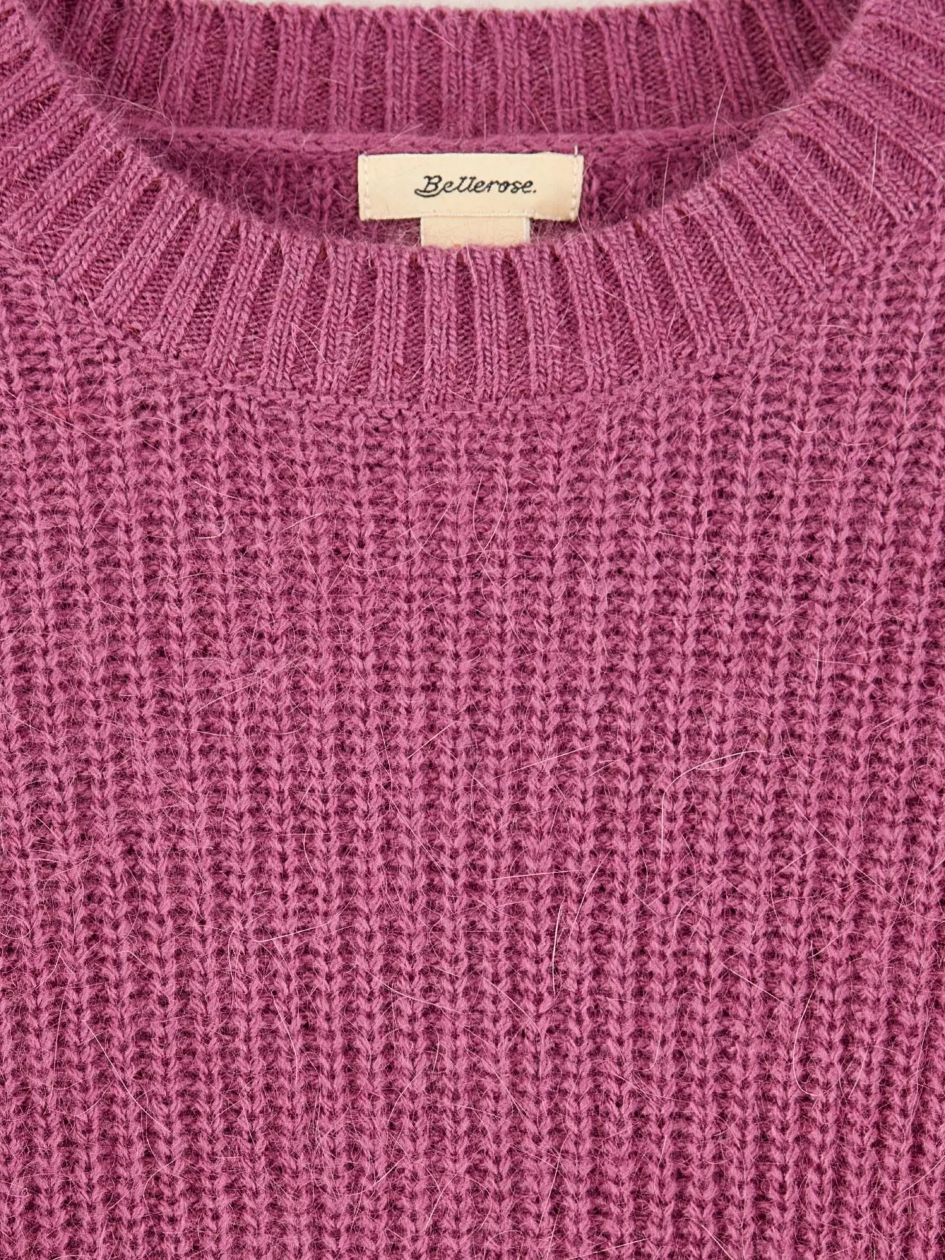 Rozerood klassieke trui met ronde hals.