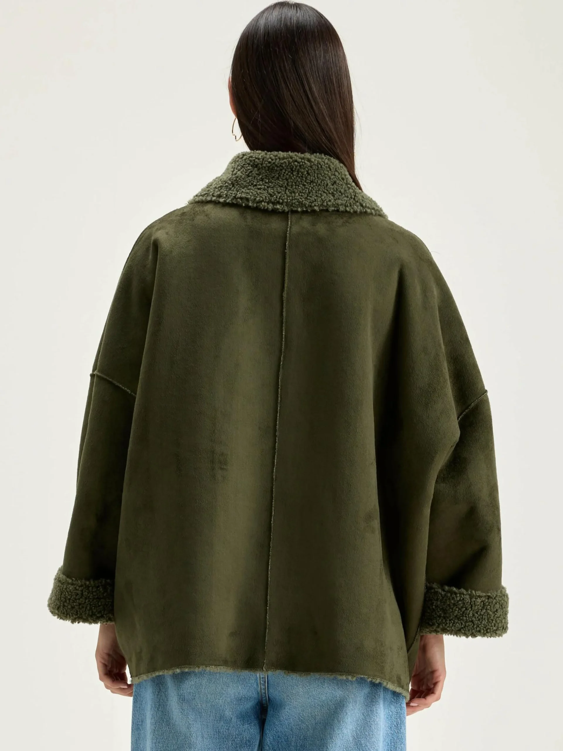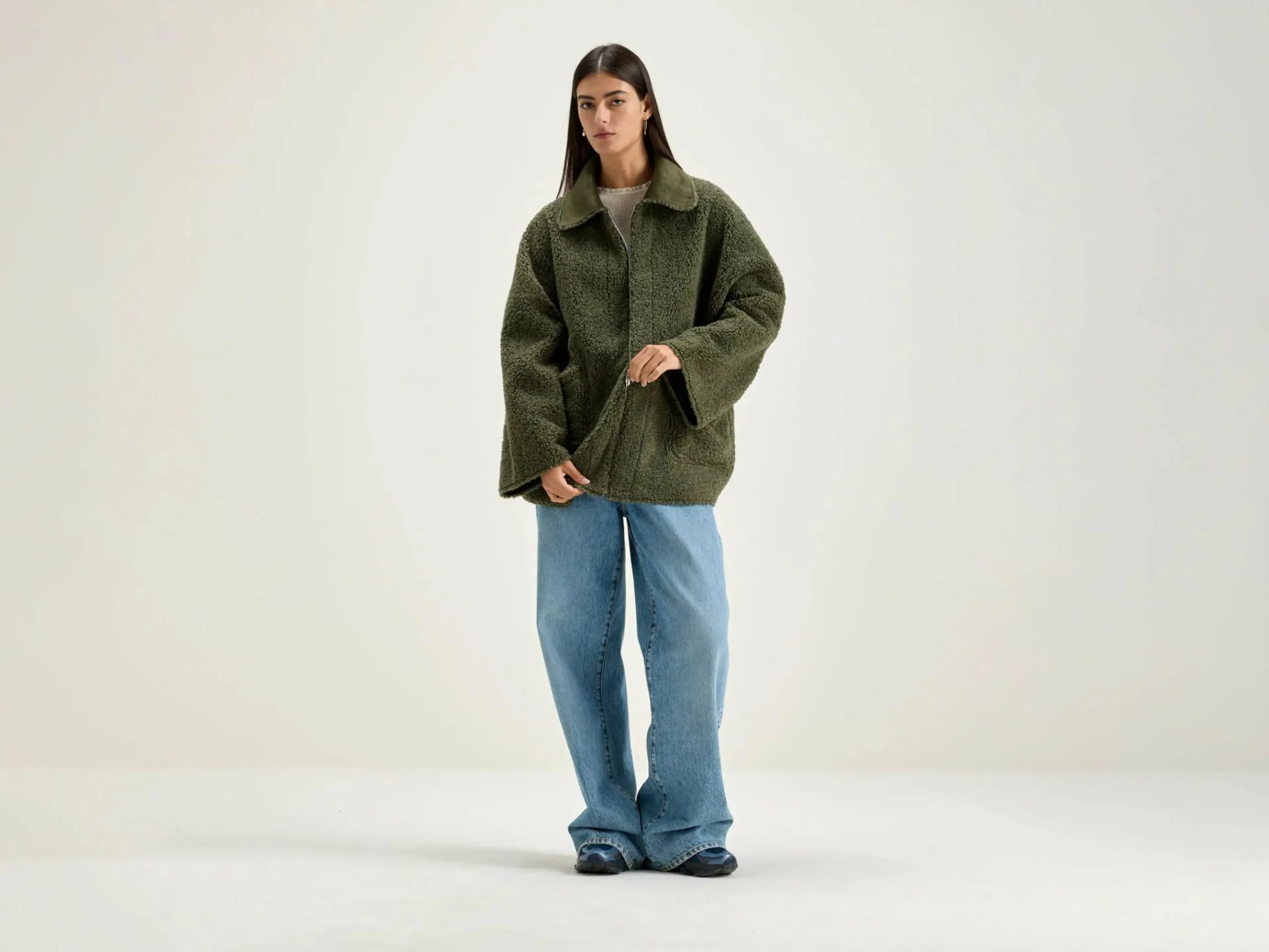Omkeerbare oversizede jas, hemdmodel, met opgestikte zakken.
