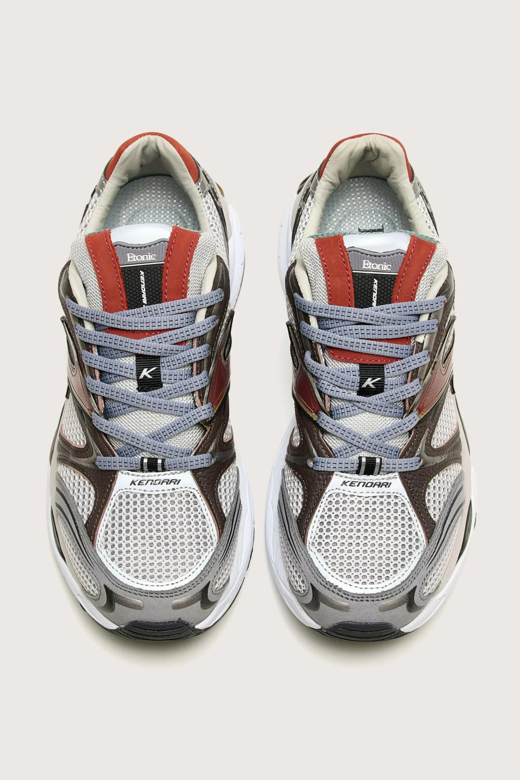 The Etonic Kendari Multi running sneaker features a technical textile and mesh upper with leather panels, tonal laces, and comfort details.