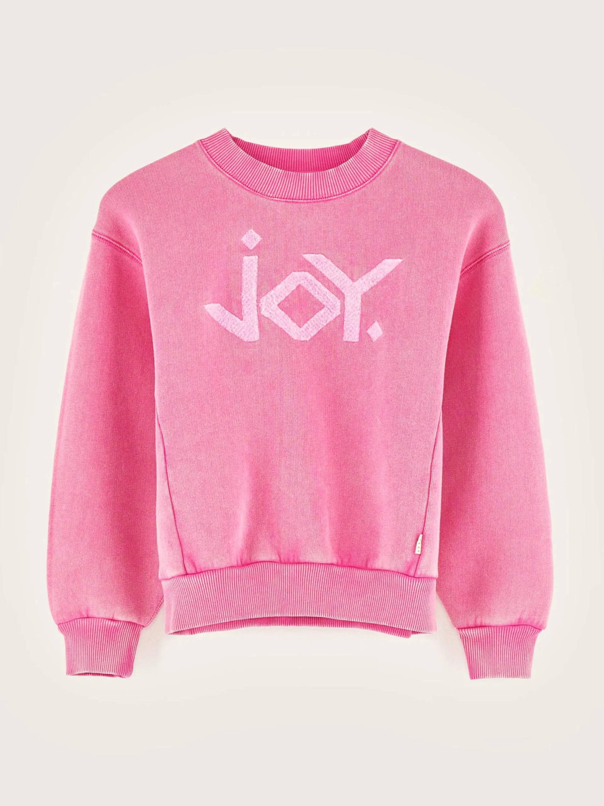 - Vilten “JOY”-bedrukking vooraan