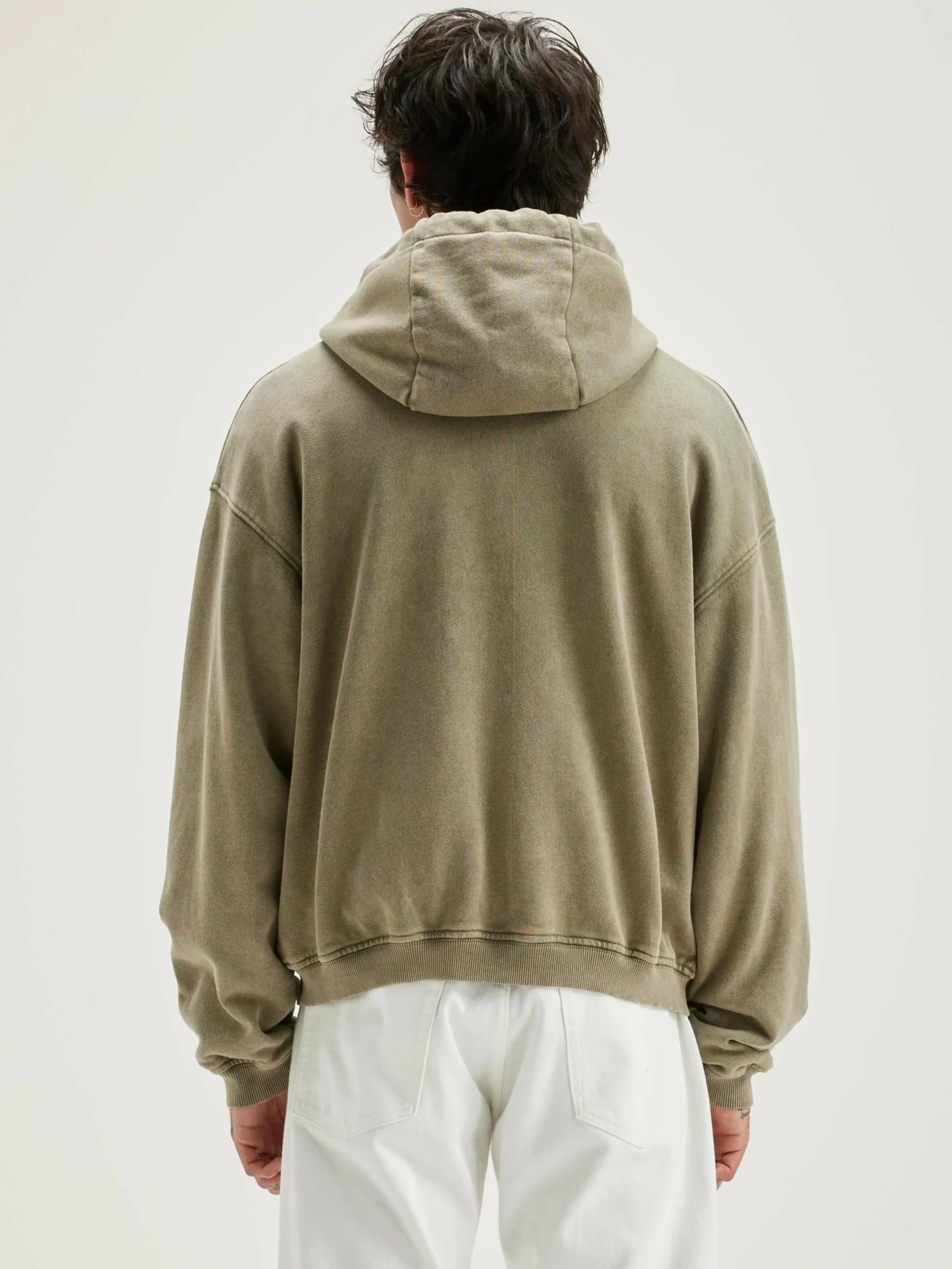 Oversizede hoodie met ritssluiting vooraan, van kakigroene zware katoenjersey.