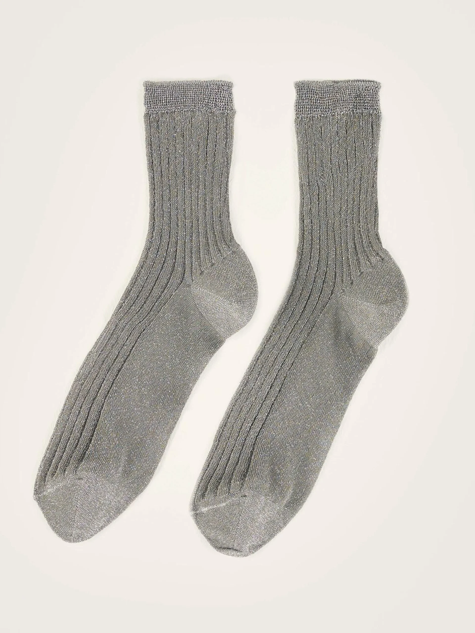 Korte sokken met een geribbelde textuur en een doorzichtige, metallic look. Een subtiel en toch speels accent aan je voeten, dat zijn ze!