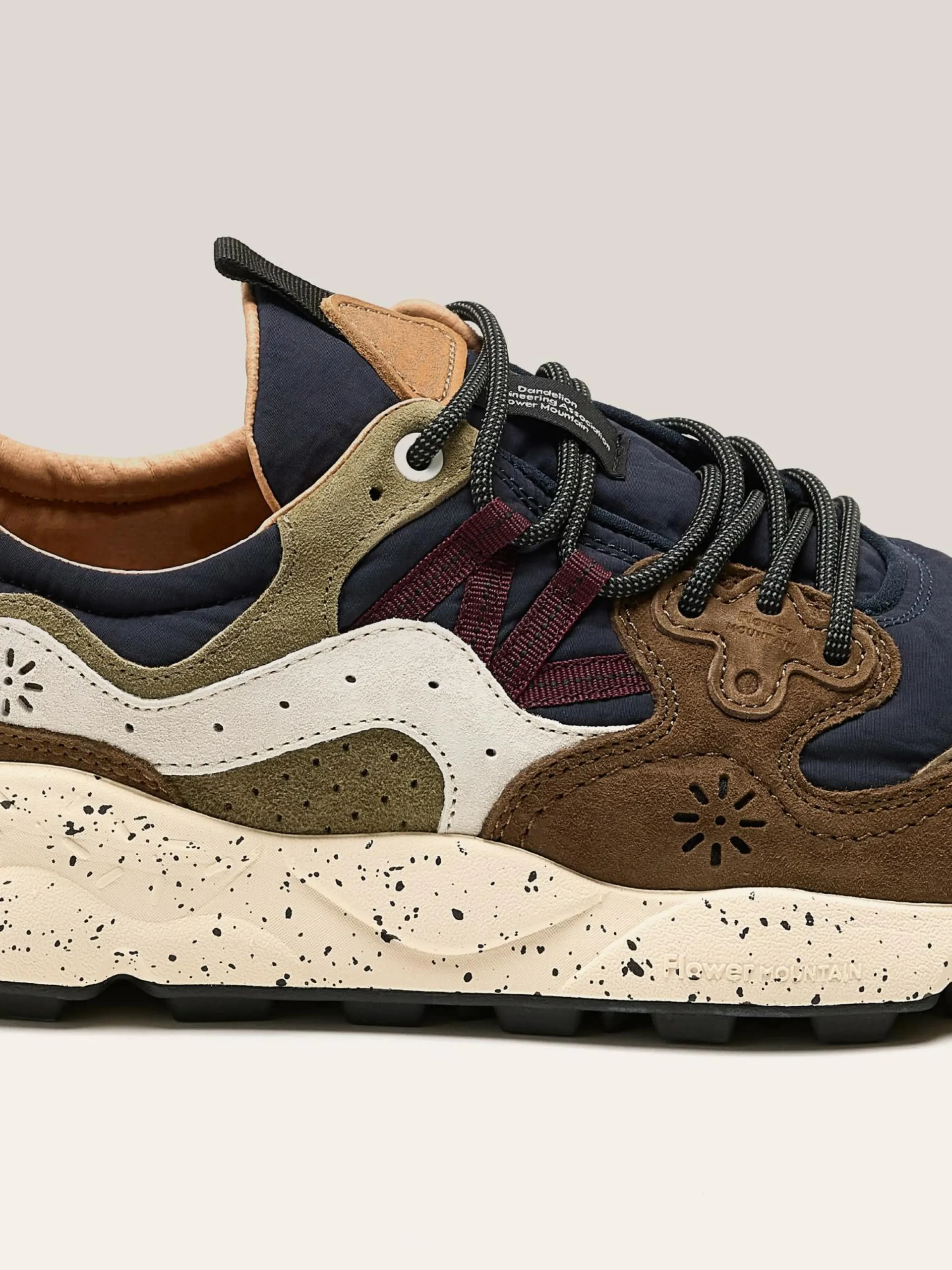 De Flower Mountain YAMANO 3 wandelschoenen hebben een bovenwerk van technisch suède en mesh, wandelveters en een ultralichte rubberen zool.