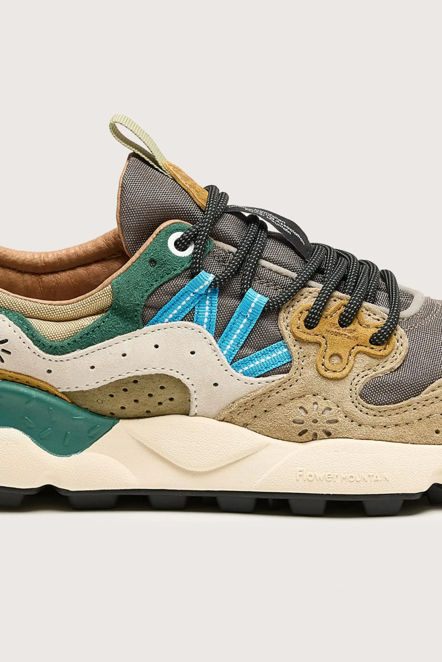 De Flower Mountain YAMANO 3 wandelschoenen hebben een bovenwerk van technisch suède en mesh, wandelveters en een ultralichte rubberen zool.