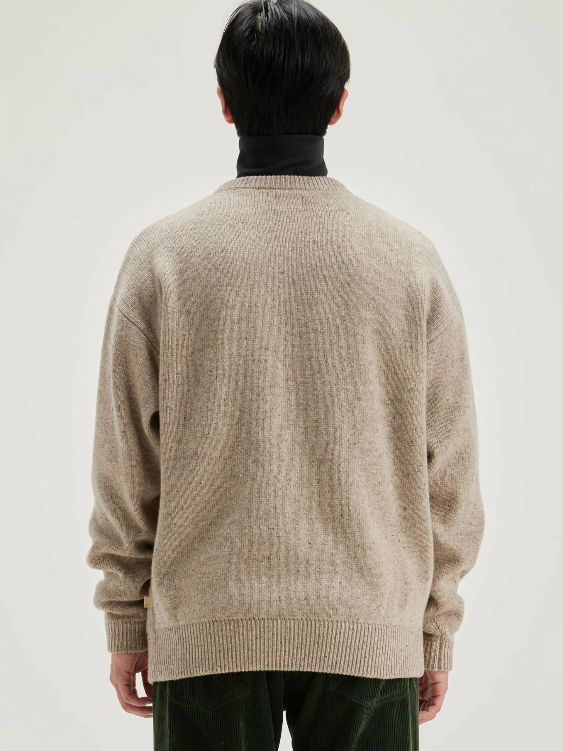 Oversizede, beige sweater met ronde hals, van merinowol.