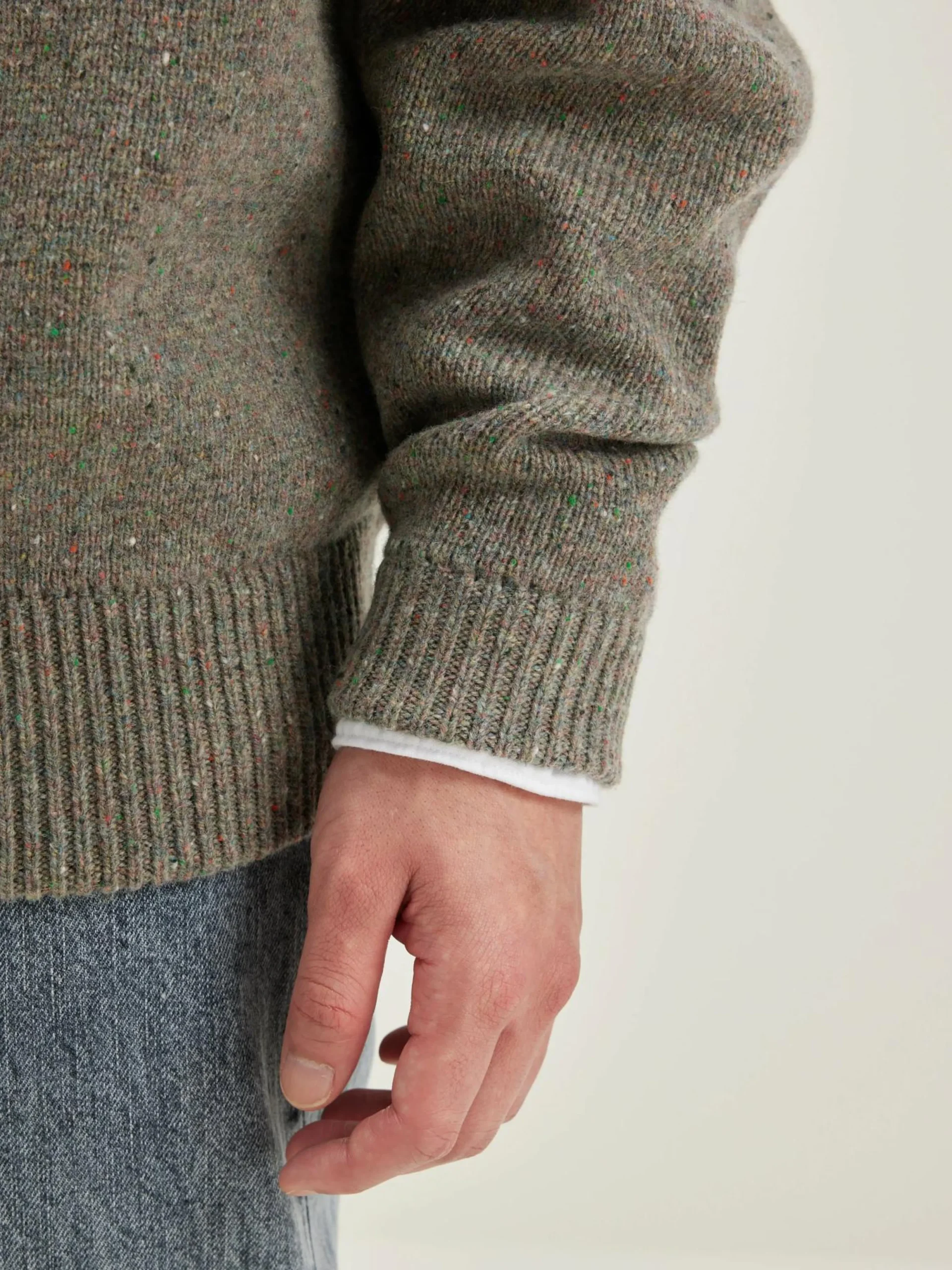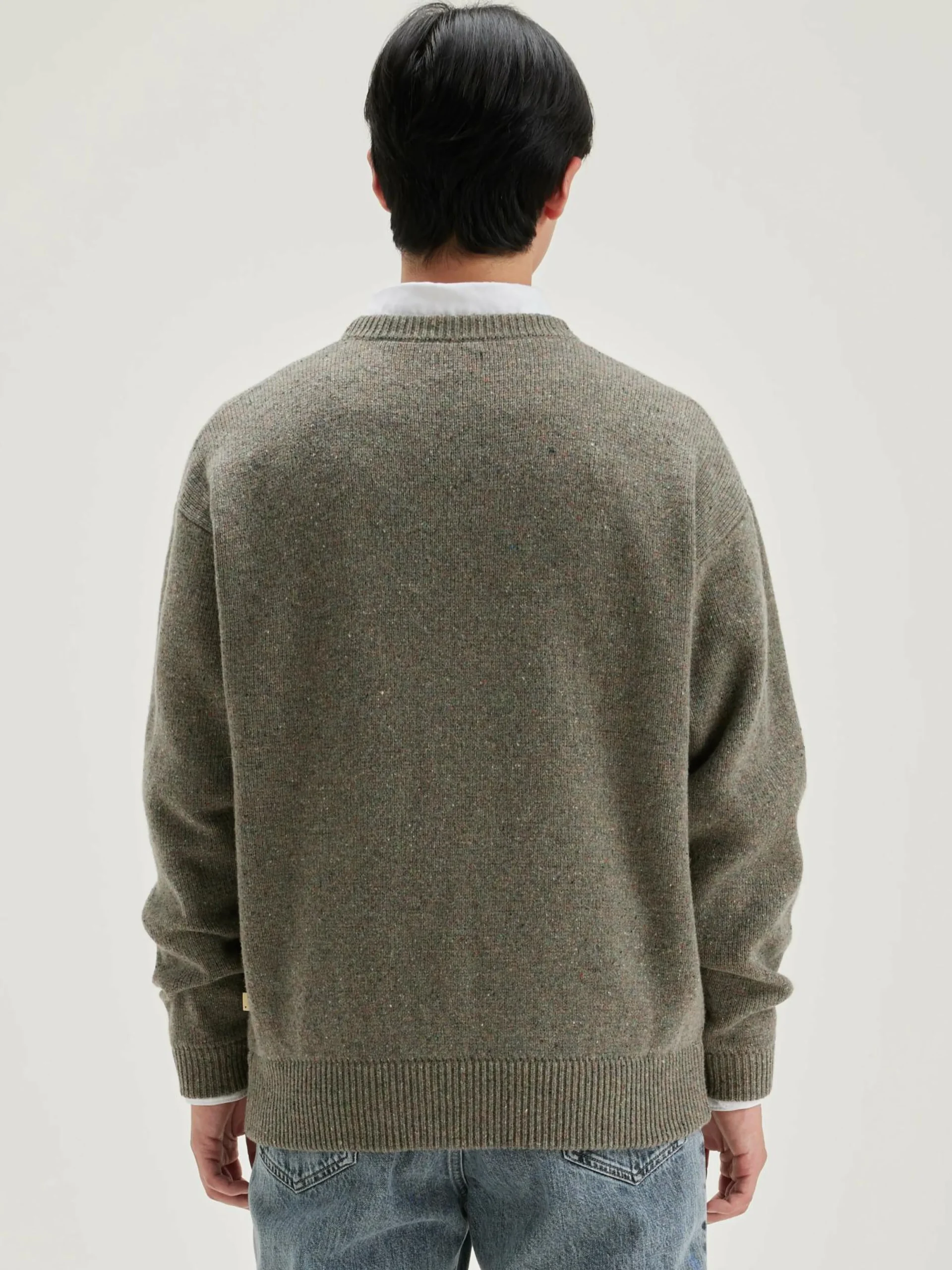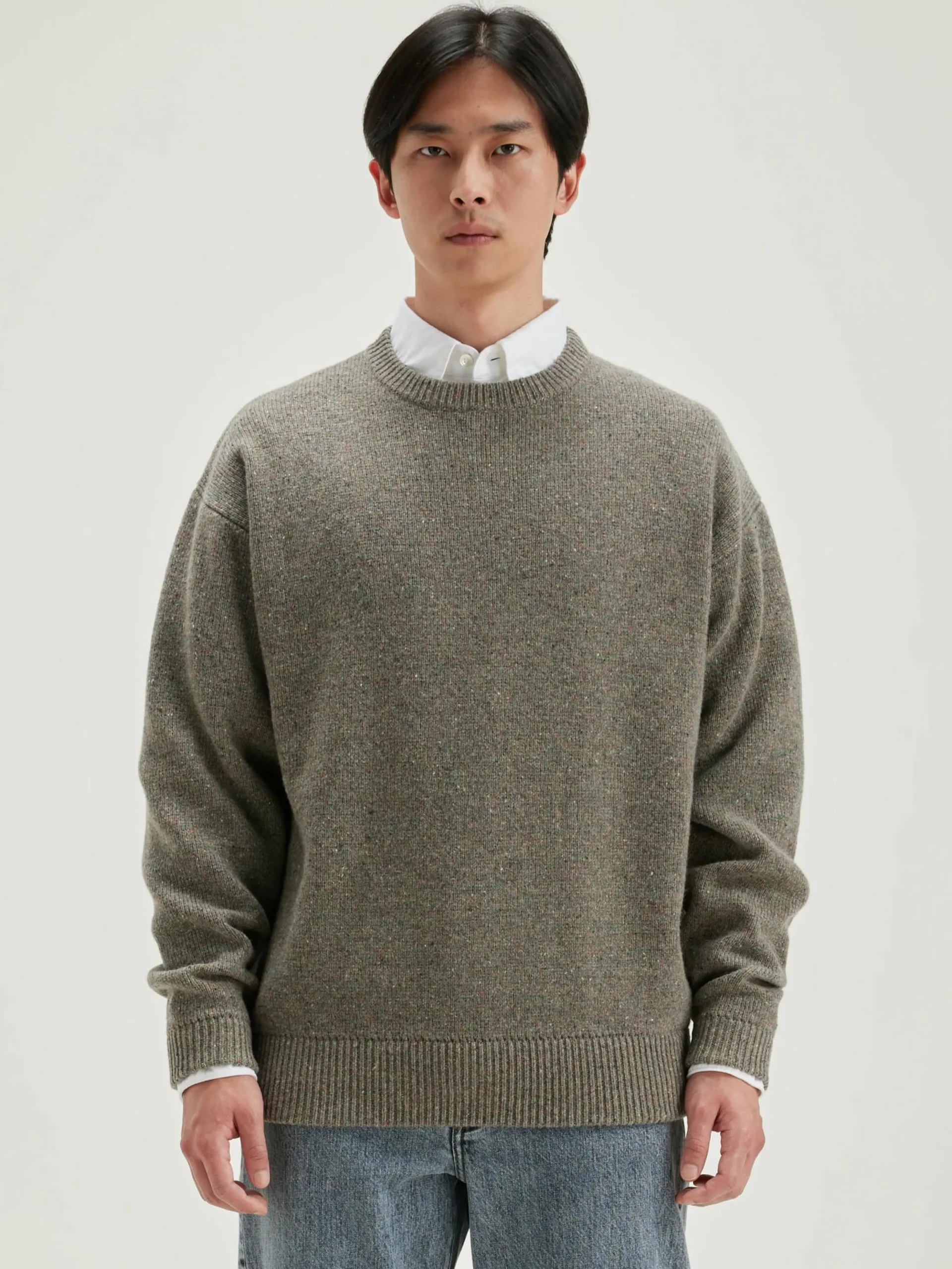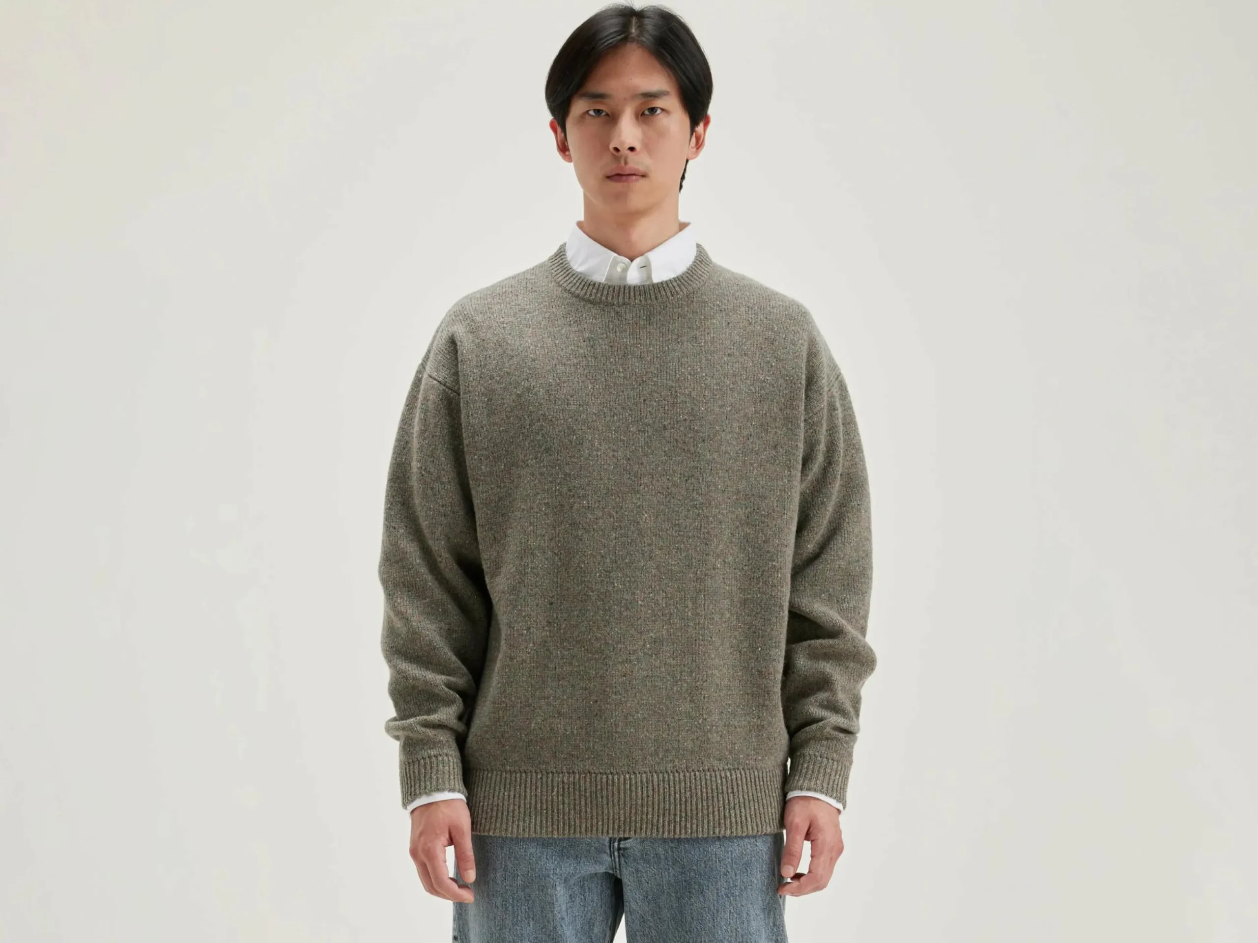 Oversizede, heidegrijze sweater met ronde hals, van merinowol.
