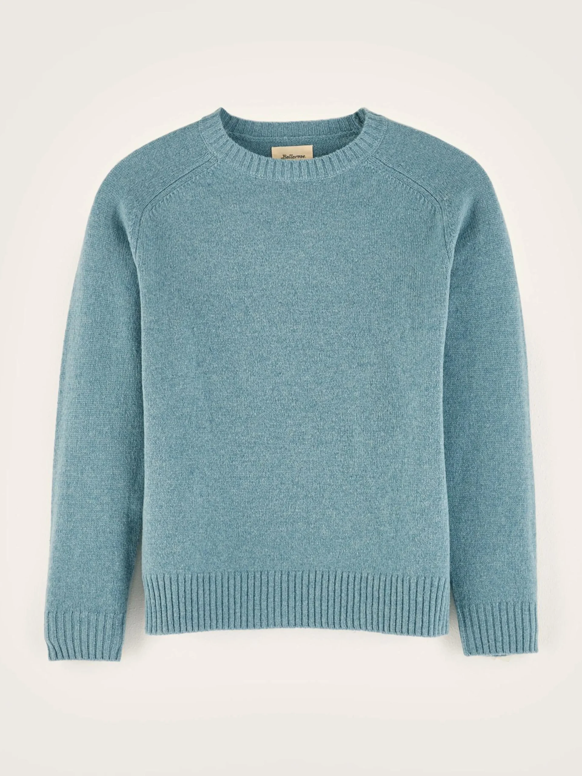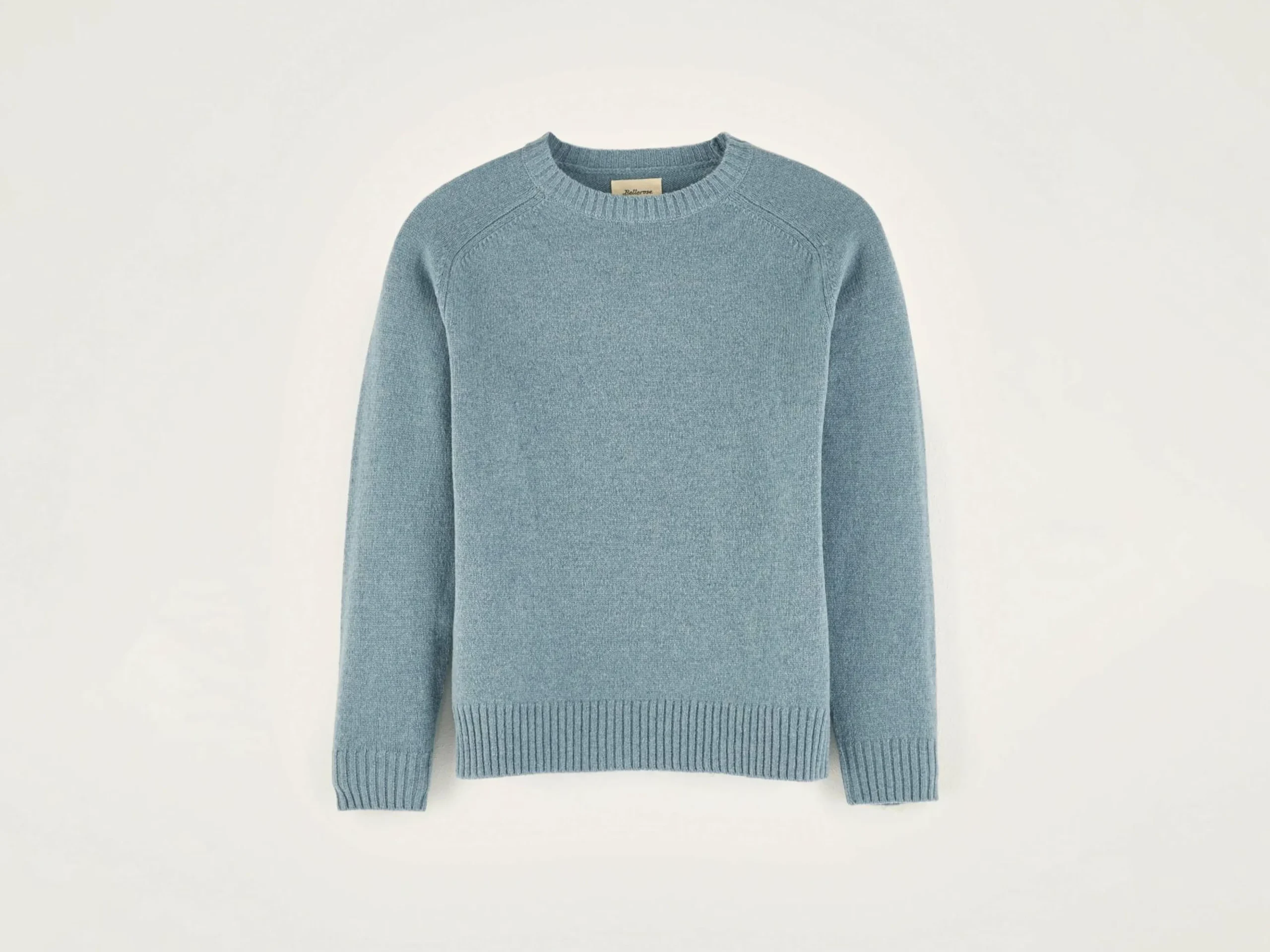 Comfortabele, klassieke sweater met ronde hals, van blauwe merinowol.