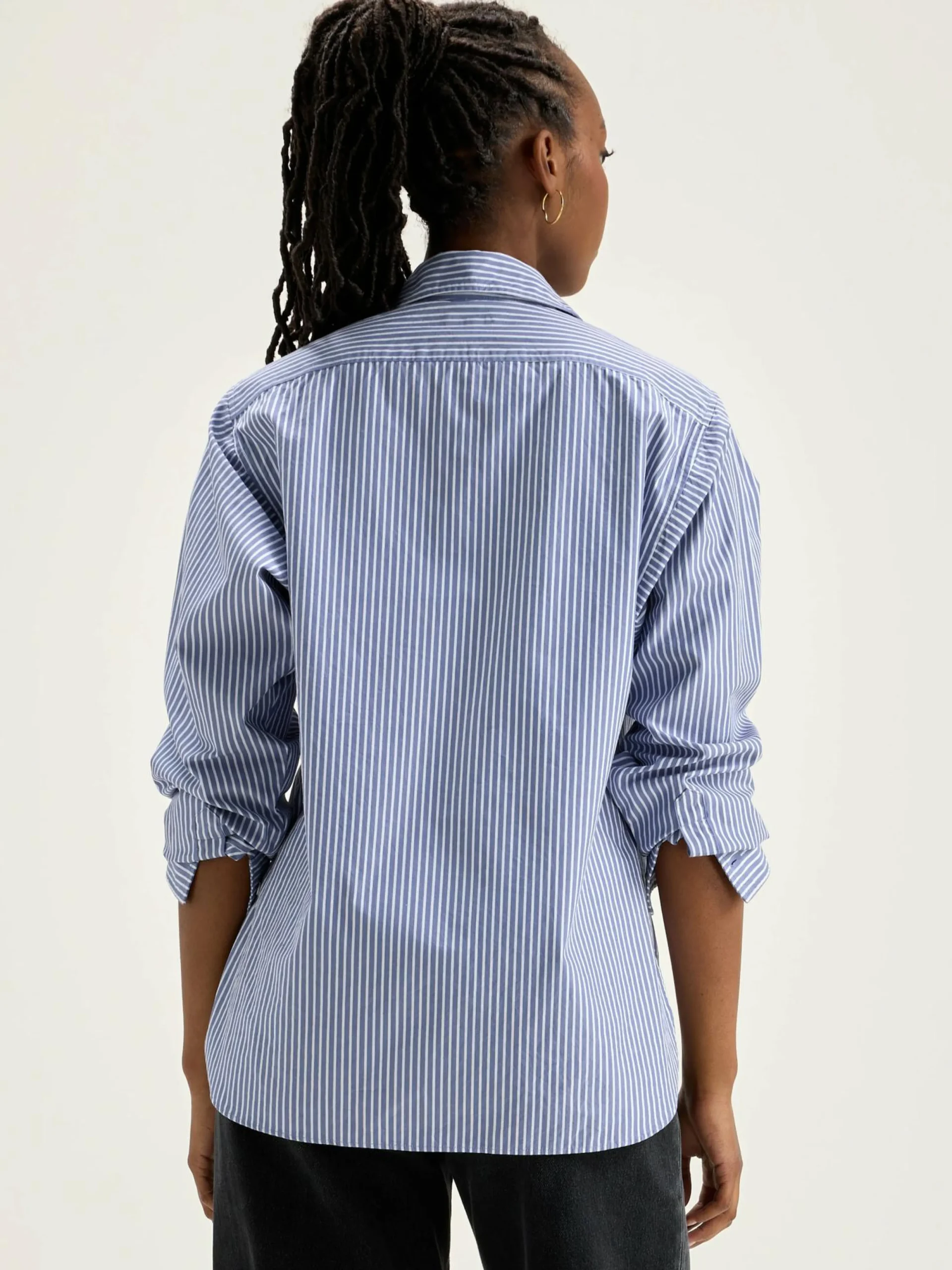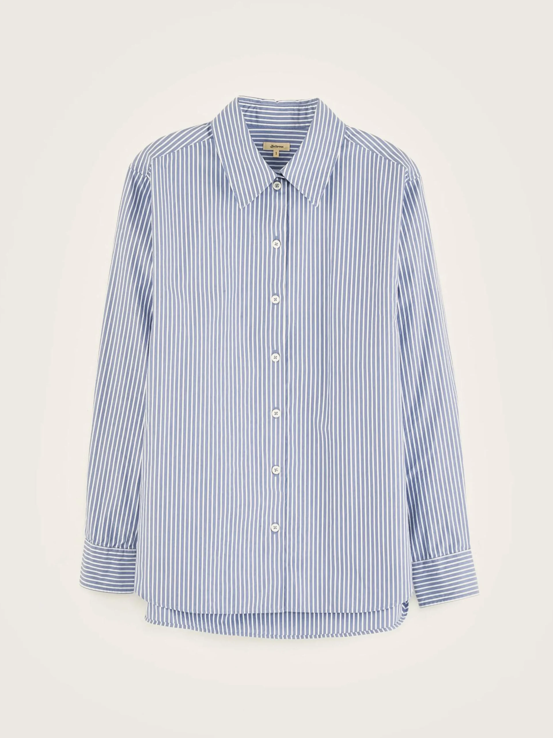 Blauw en wit gestreept hemd met kraag en een recht model, van katoenpopeline.