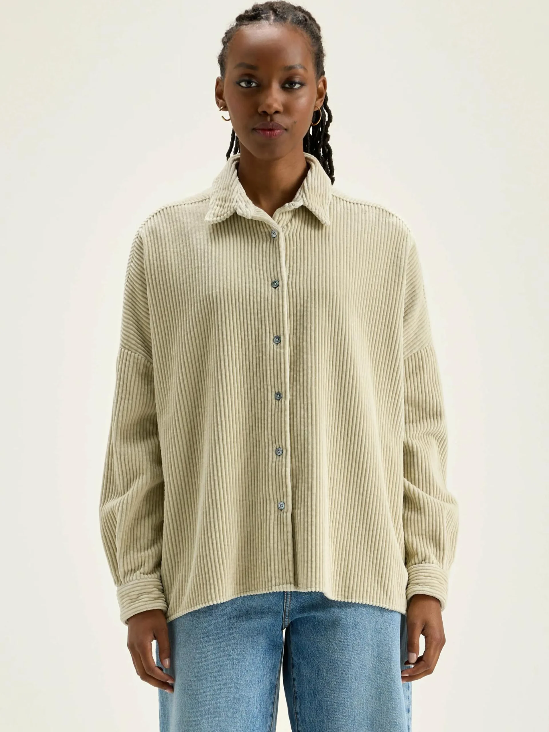 Oversized hemd van ecru corduroy, met klassieke kraag en lage schouderlijn.