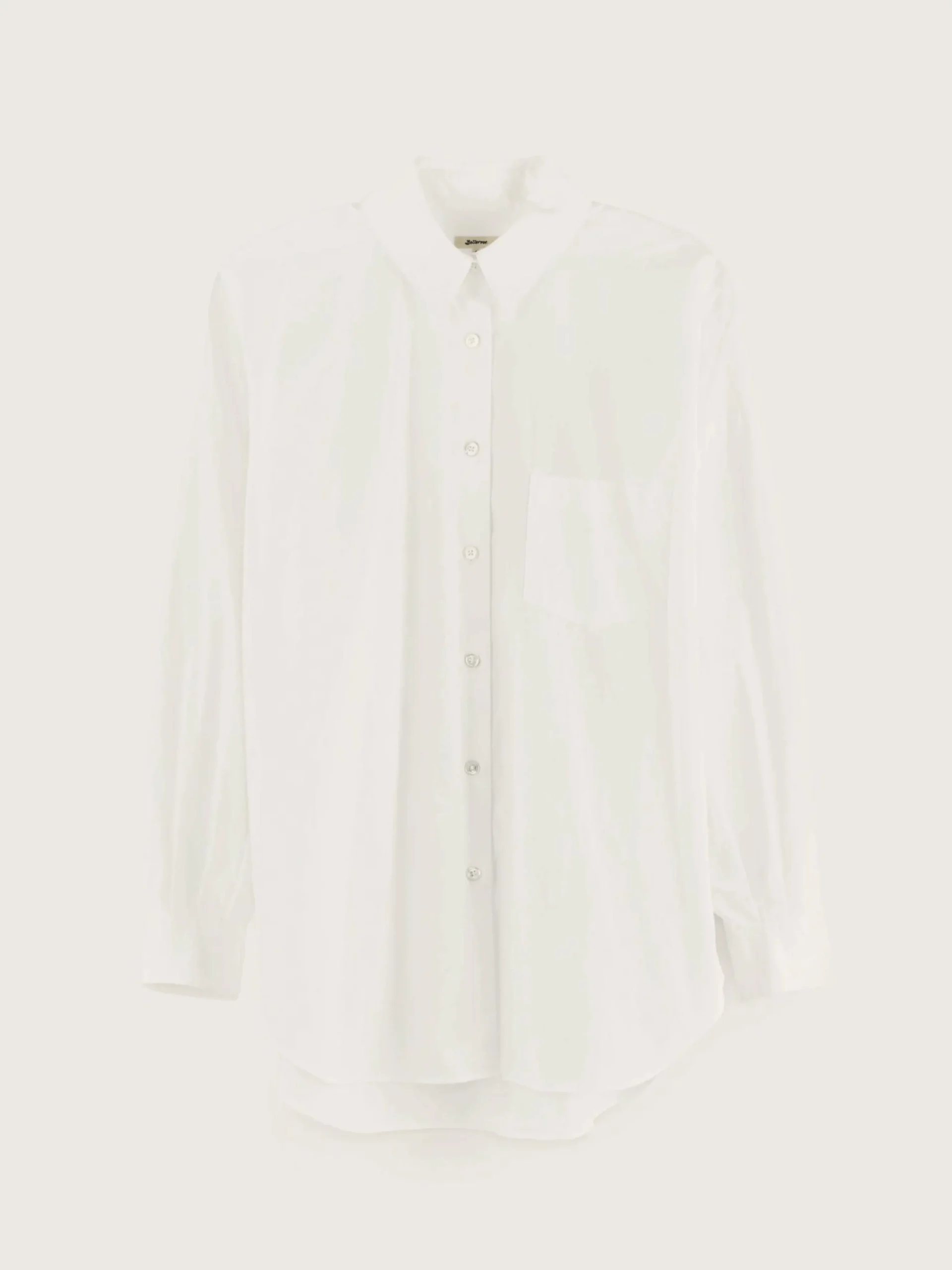 Fris wit oversized hemd met kraag, een lage schouderlijn en een borstzak, van katoenpopeline.