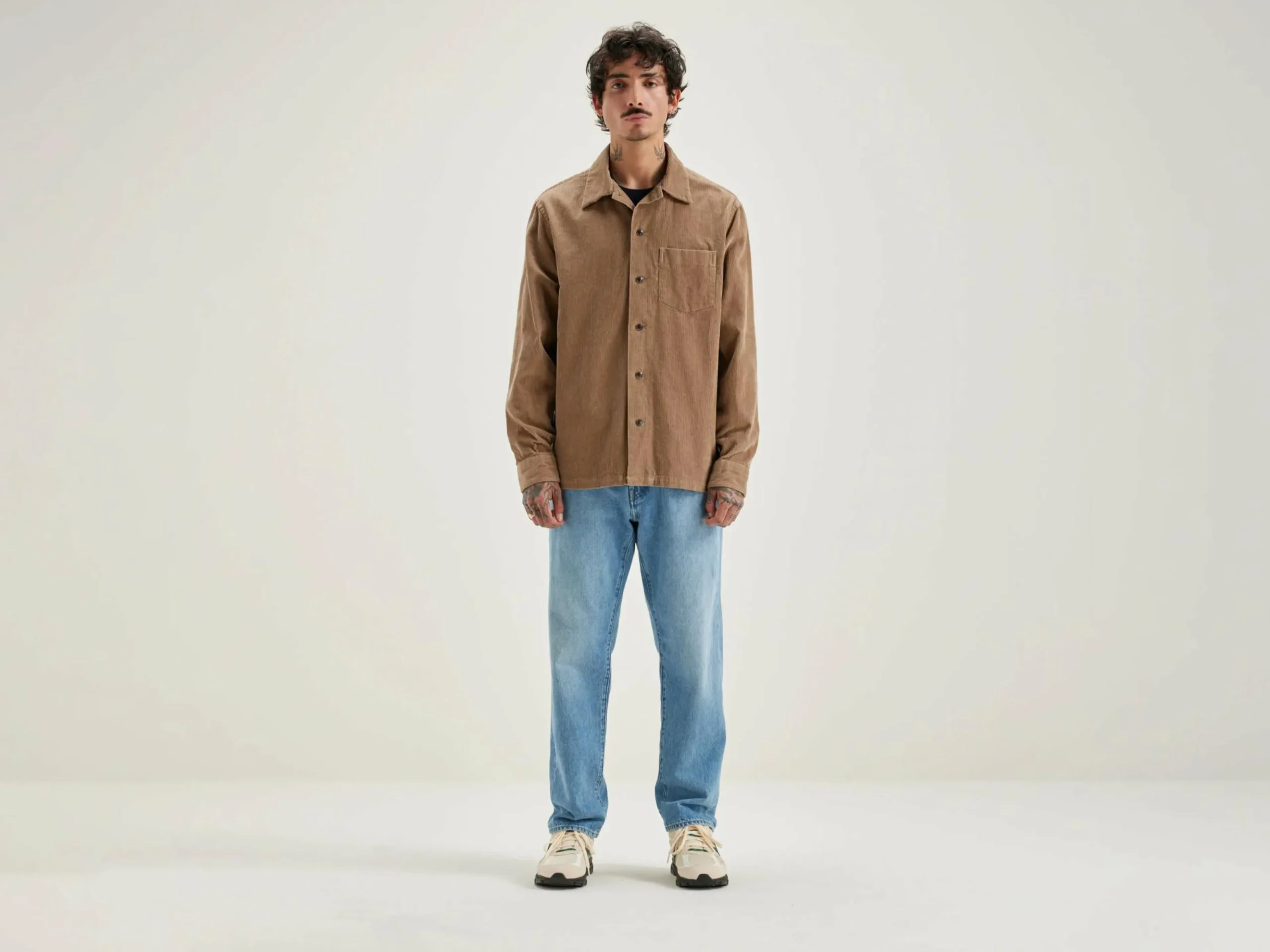 Klassiek overshirt van grijs corduroy katoen.