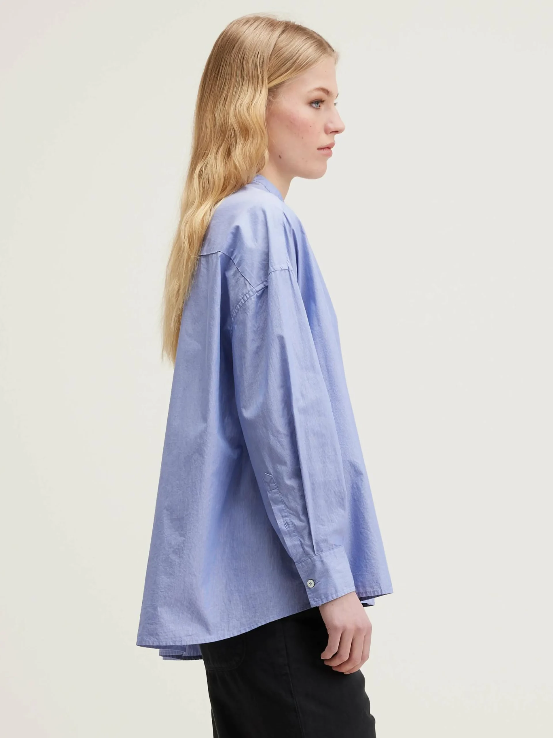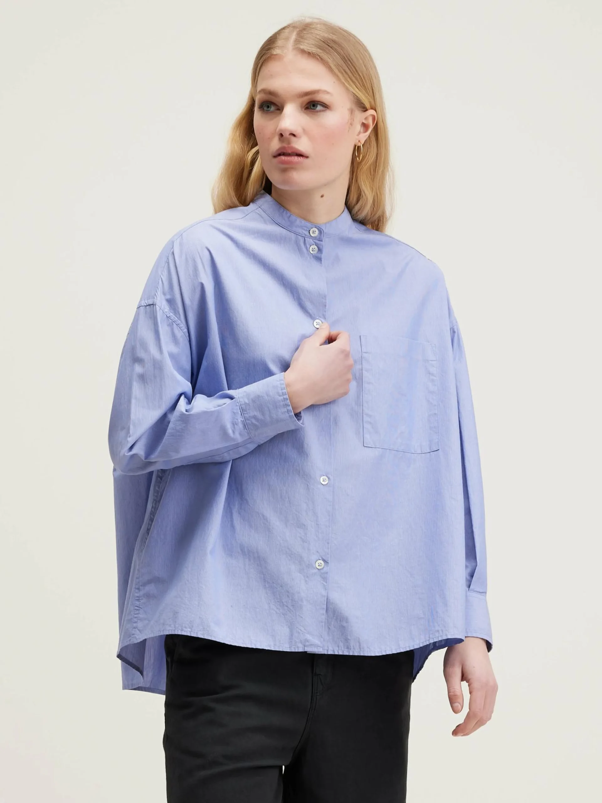 Oversized button-down hemd van gestreept popelinekatoen met een opgestikte zak en een kleine opstaande kraag.