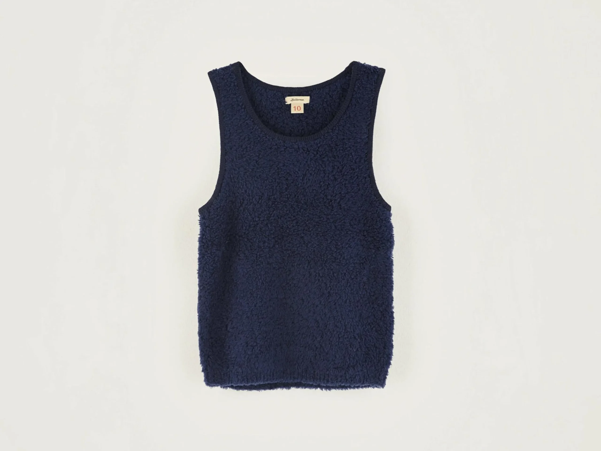 Donkerblauwe, klassieke tanktop van teddy-achtige stof.