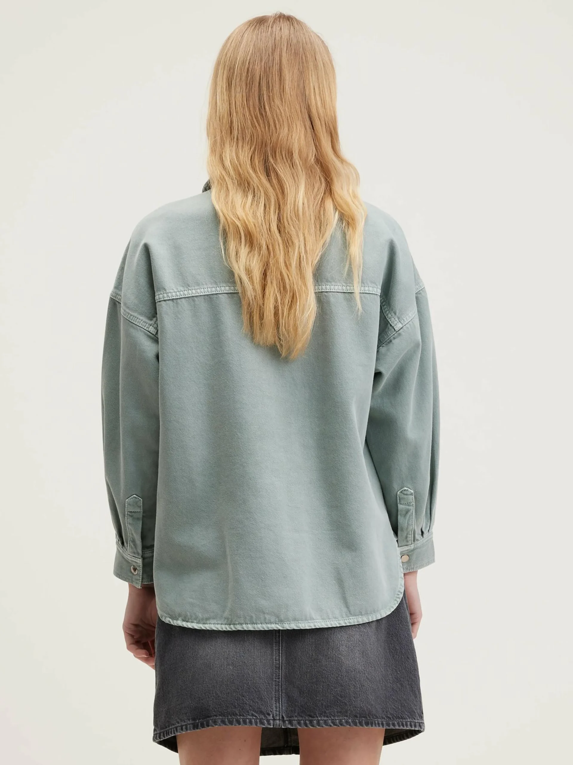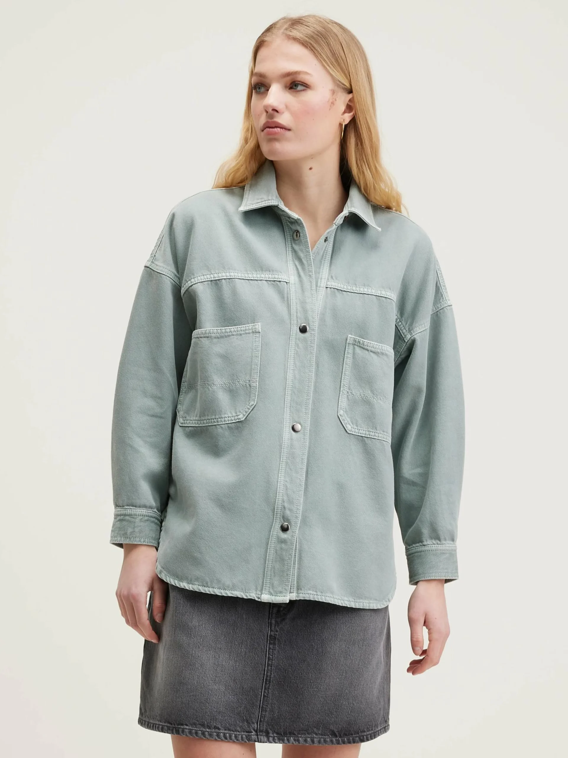 Aquagroen overshirt met workwear-look van katoenkeper.