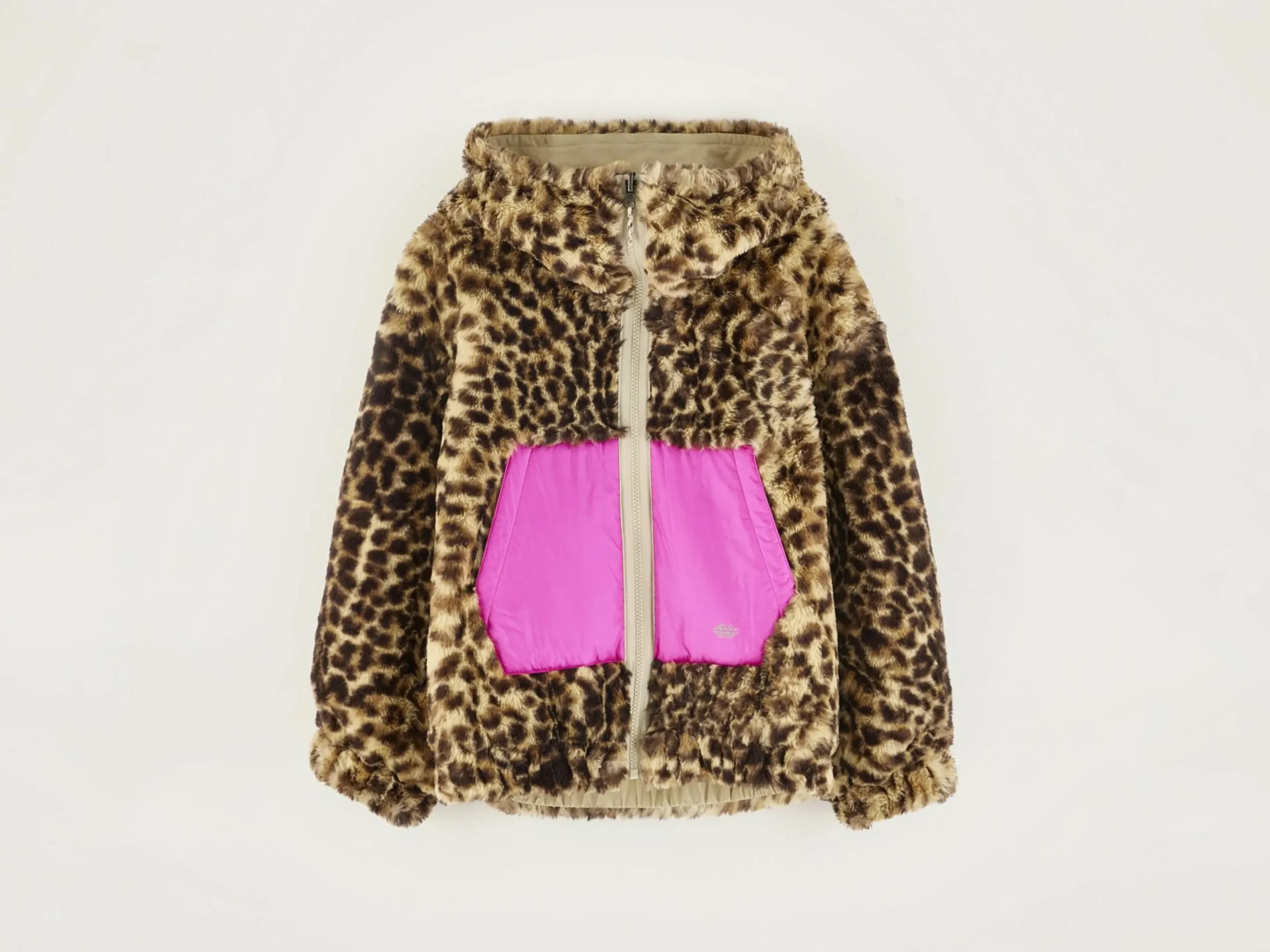 Omkeerbaar bomberjack in ecru met voering van imitatiebont.