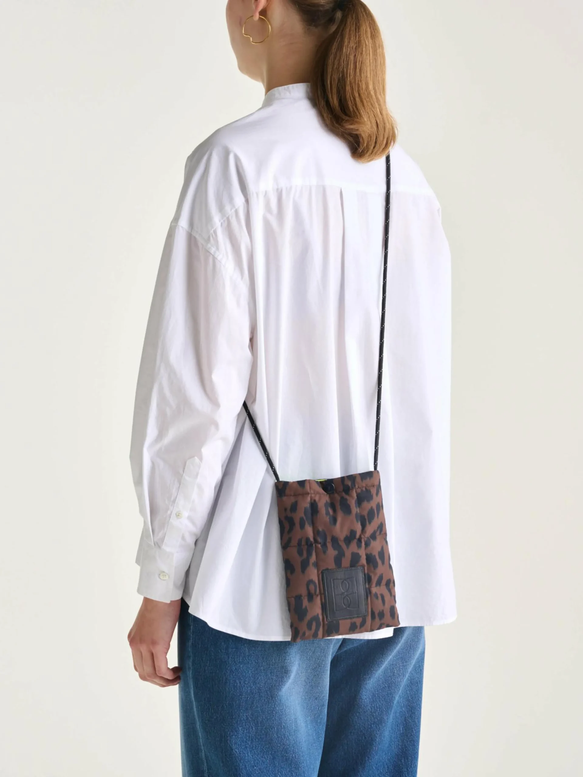 Gewatteerde telefoontas met luipaardprint.