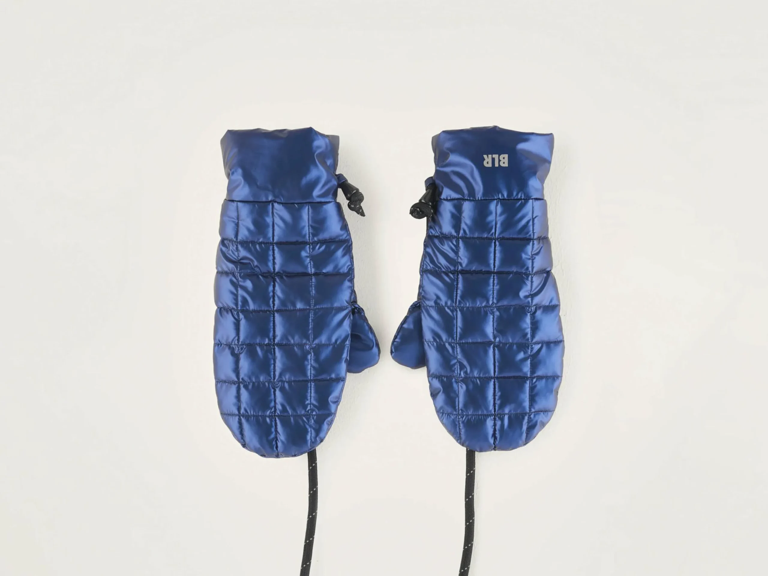 Metaalblauwe gewatteerde wanten.