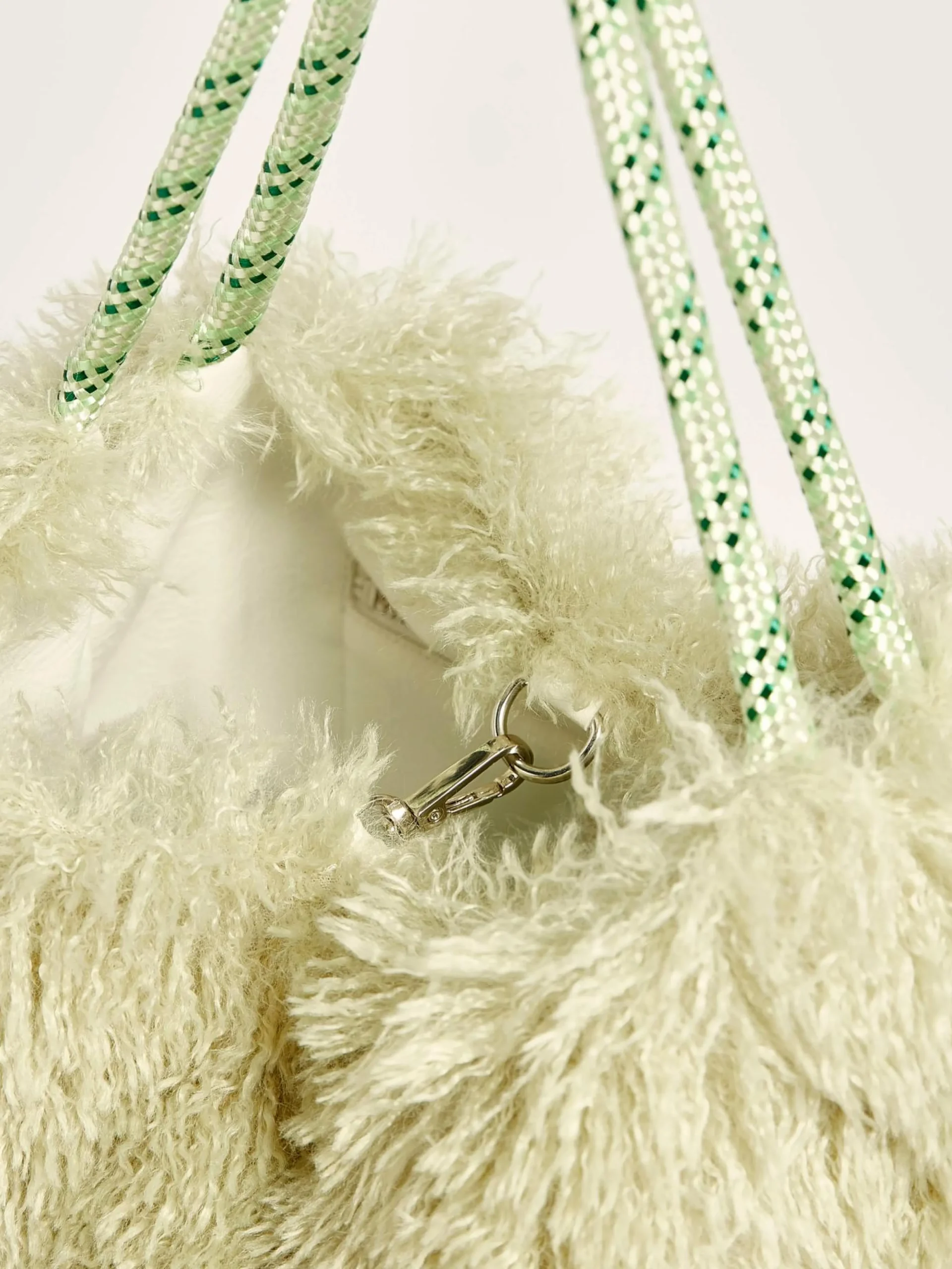 Omkeerbare, kardemomgroene tas van nepleer met twee paar handvaten.