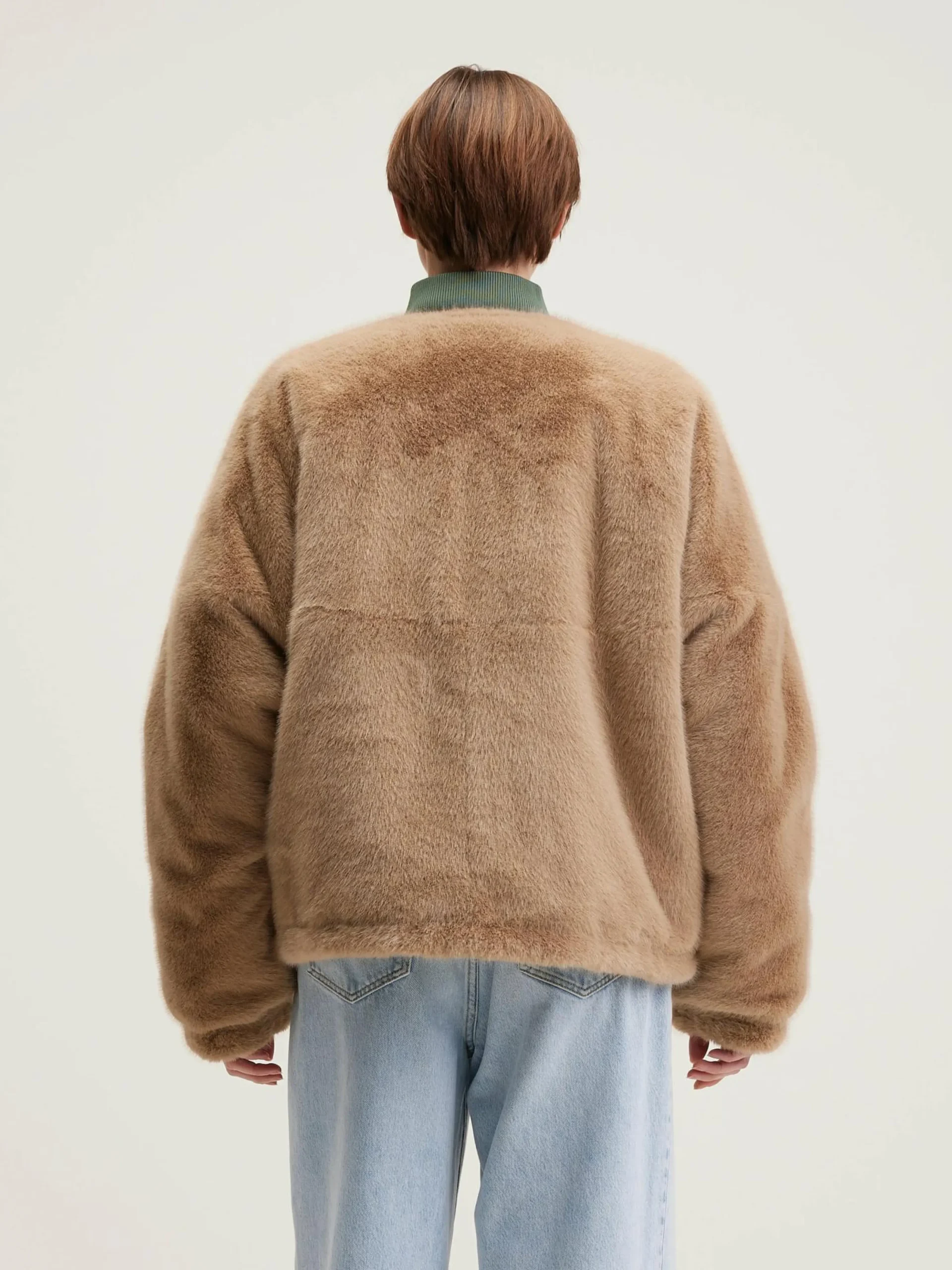 Omkeerbare, gewatteerde en oversizede jas, in een glanzende eucalyptusgroene stof.