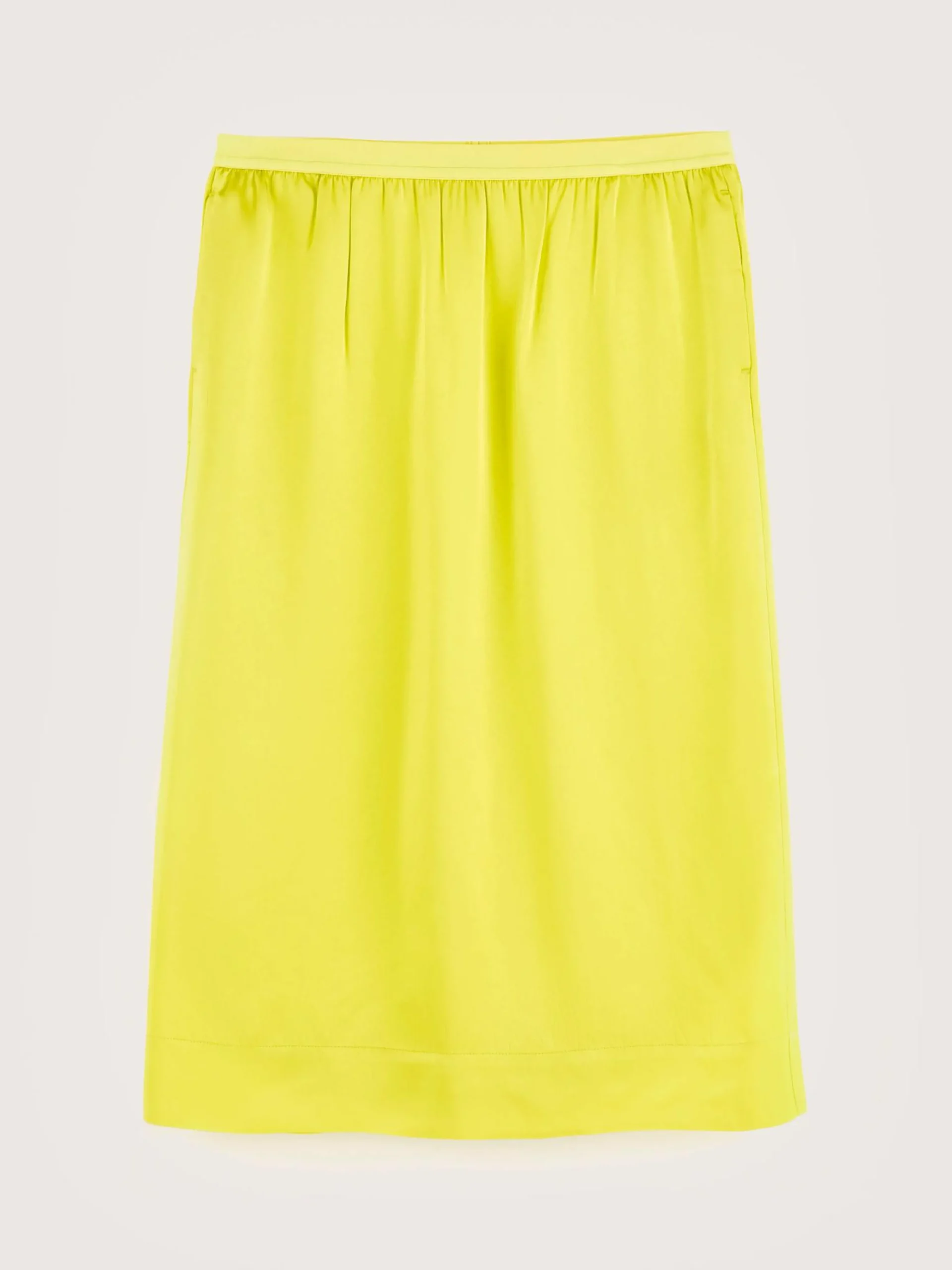 Felgele midi kokerrok met satijnen finish.