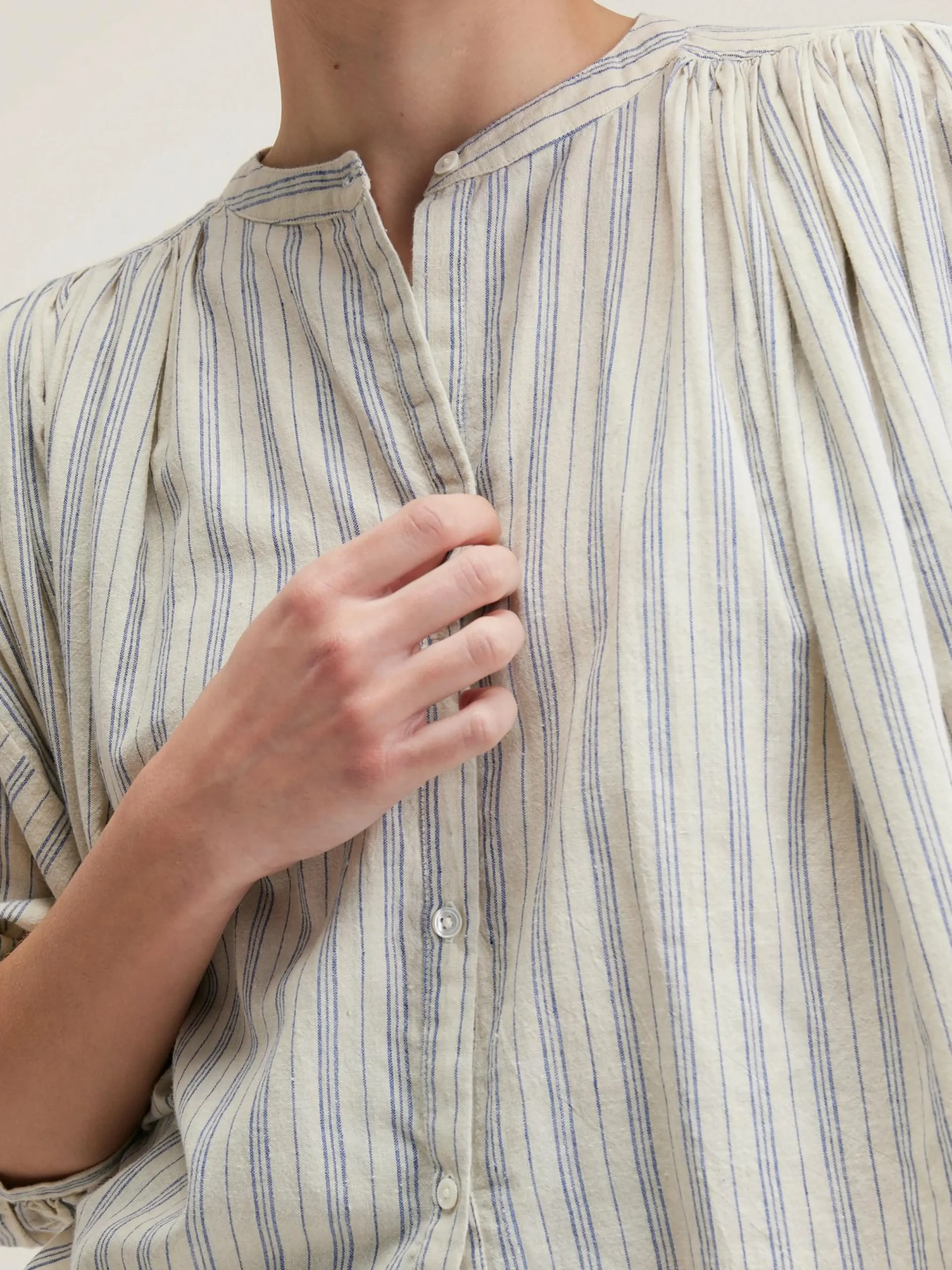 Oversizede, cropped blouse van gestreept katoen, met gefronste details.