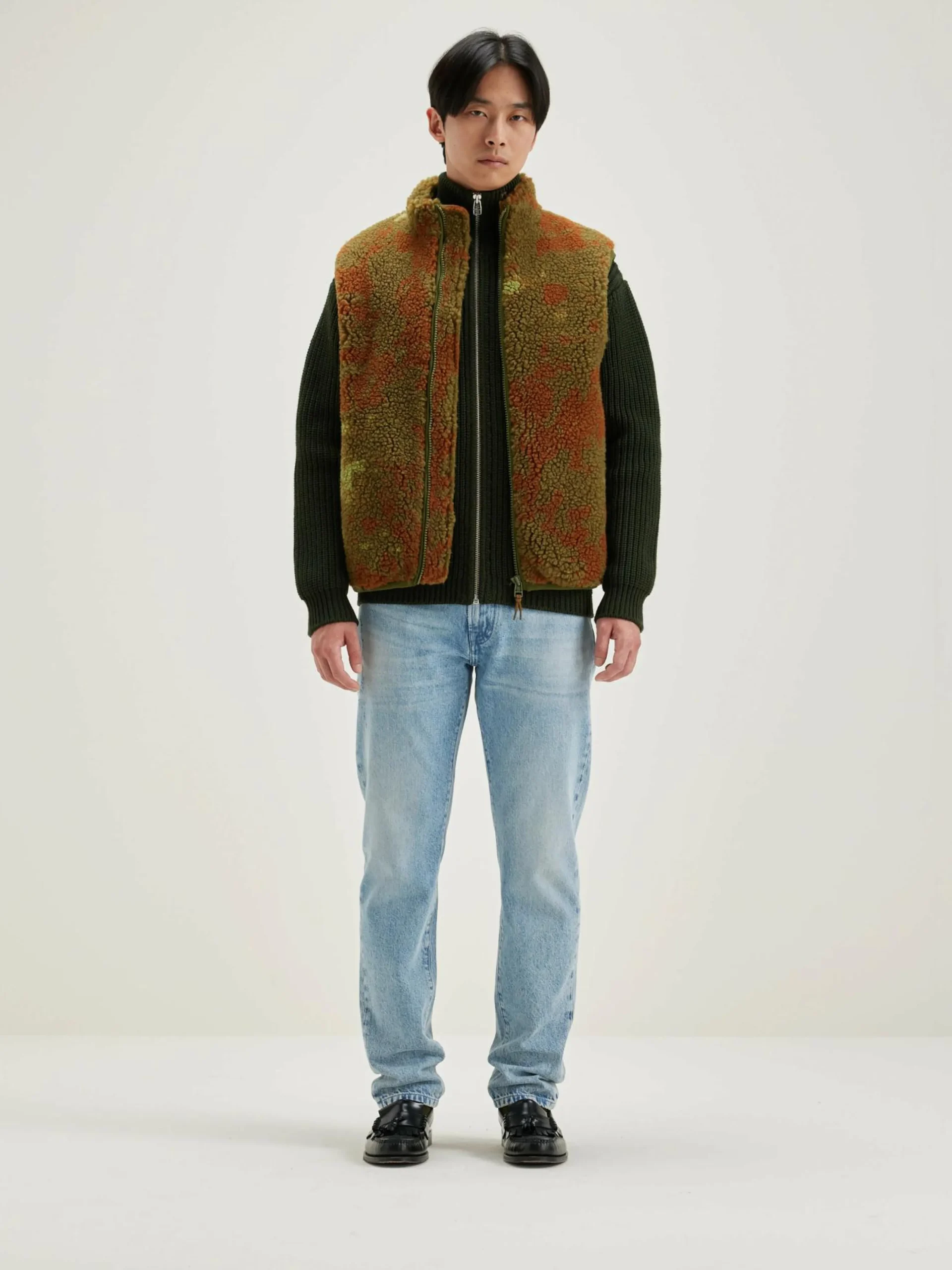 Mouwloos sweatshirt bodywarmer met rechte pasvorm en ritssluiting vooraan, in teddy met camouflageprint.