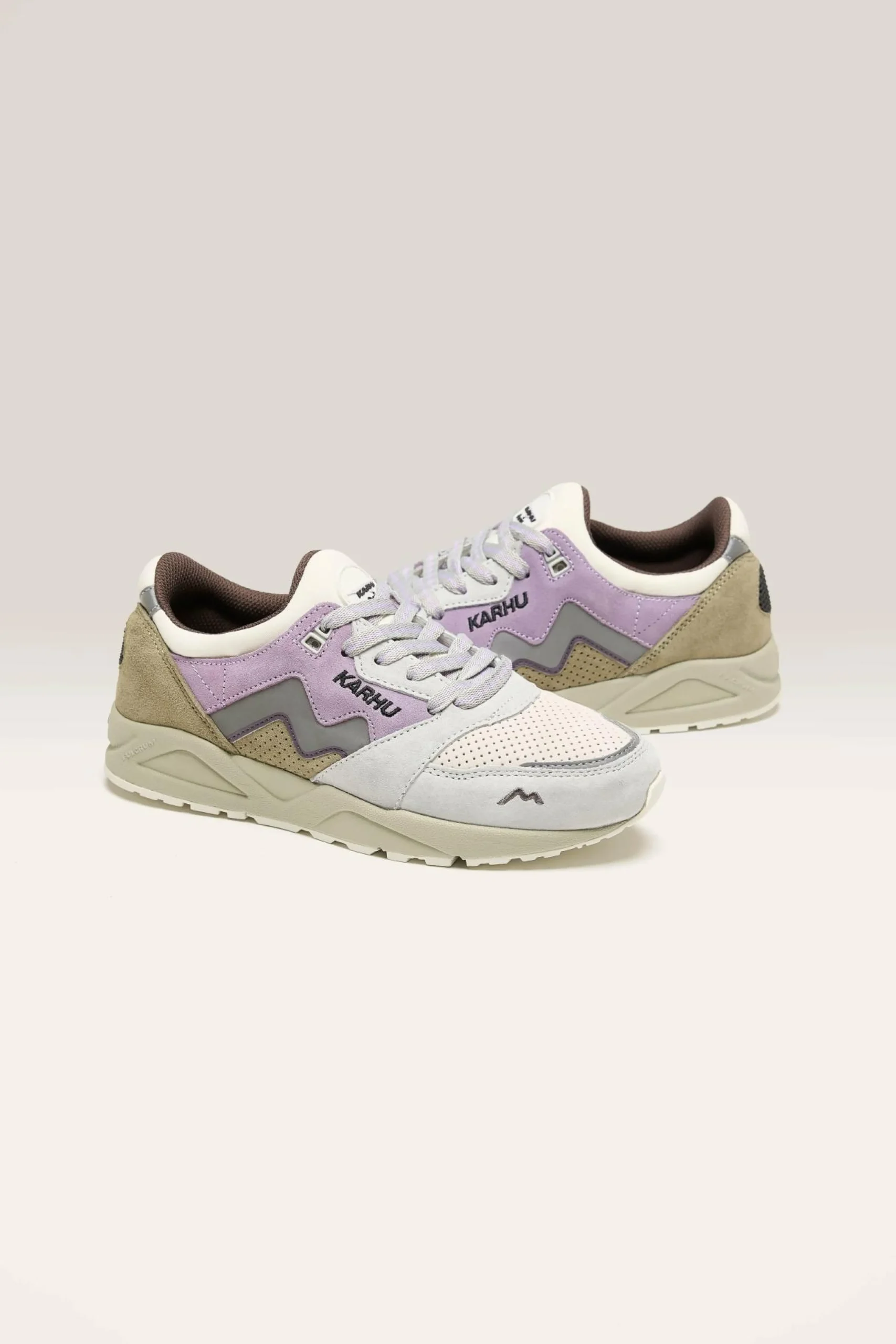 De Karhu Aria 95 lifestyle sneakers hebben een lycra mono sokconstructie en een bovenwerk van suède met waterafstotend mesh.