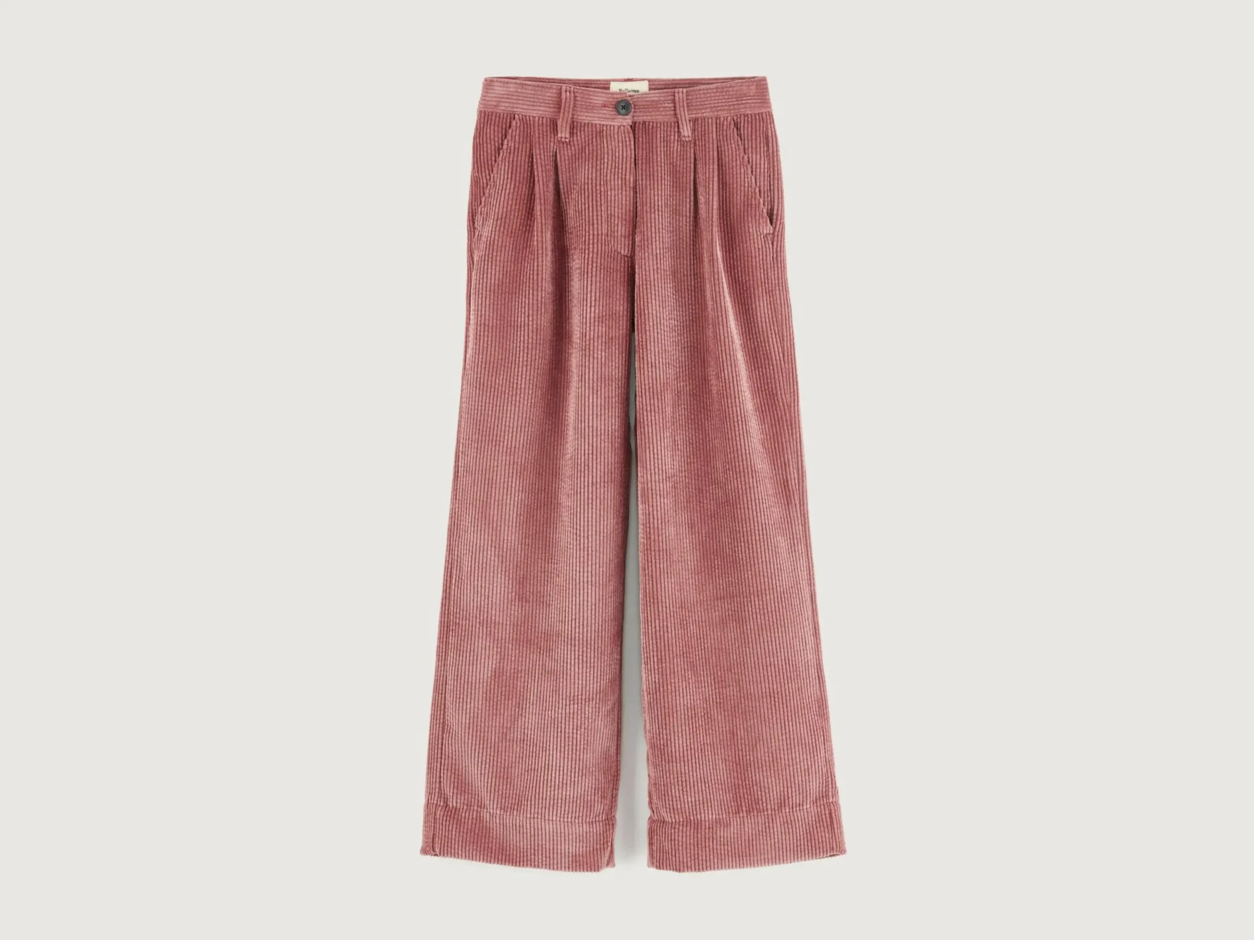 Rozerood broek met tailored fit en hoge taille, van corduroy met brede rib.