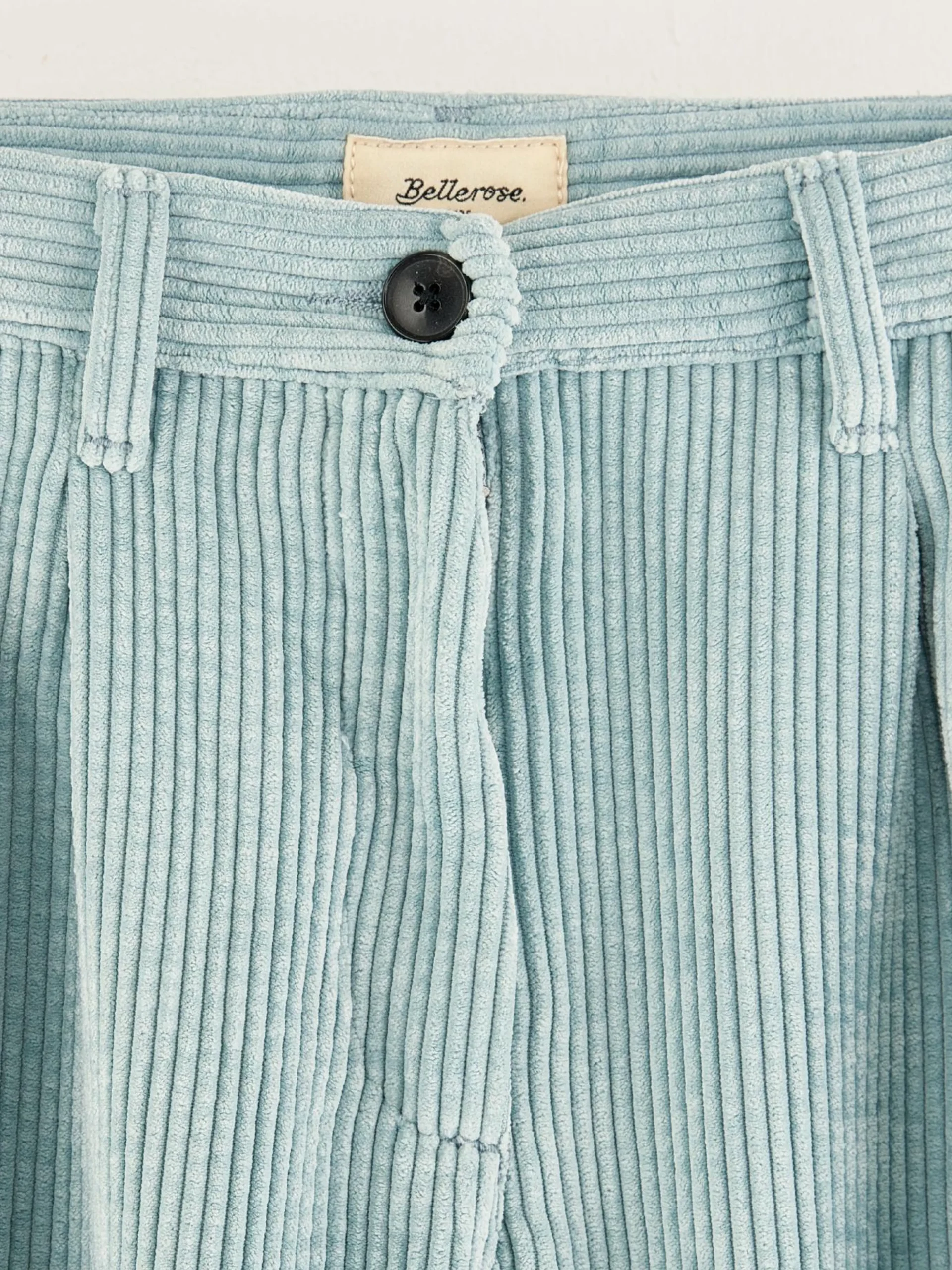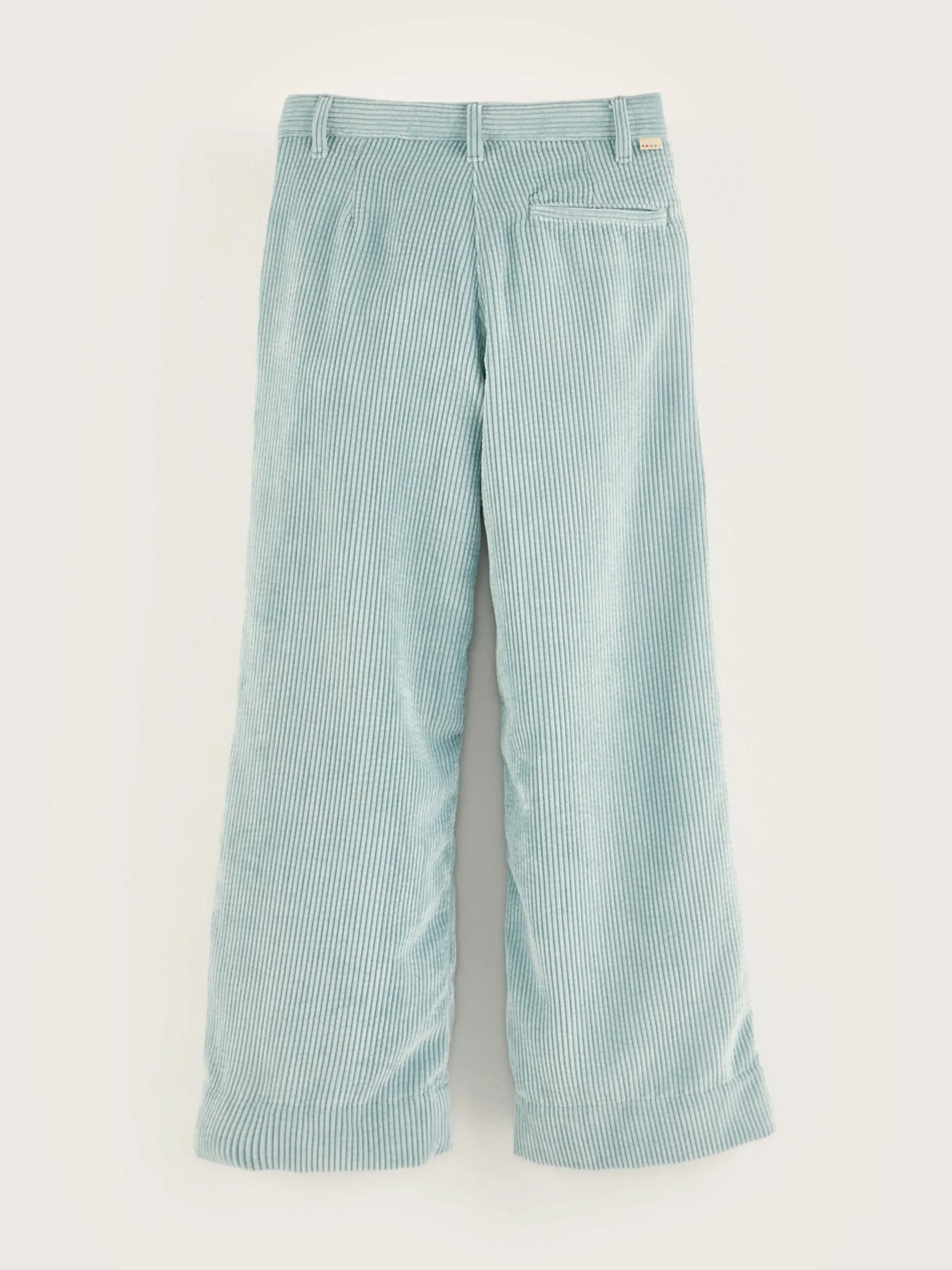 Blauwe broek met tailored fit en hoge taille, van corduroy met brede rib.