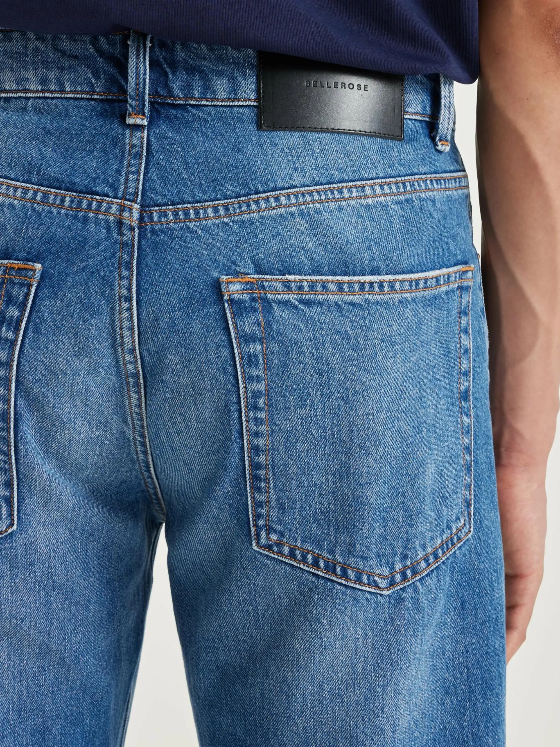 Regular fit jeans met normale taille, van middenblauw gebleekt katoendenim.