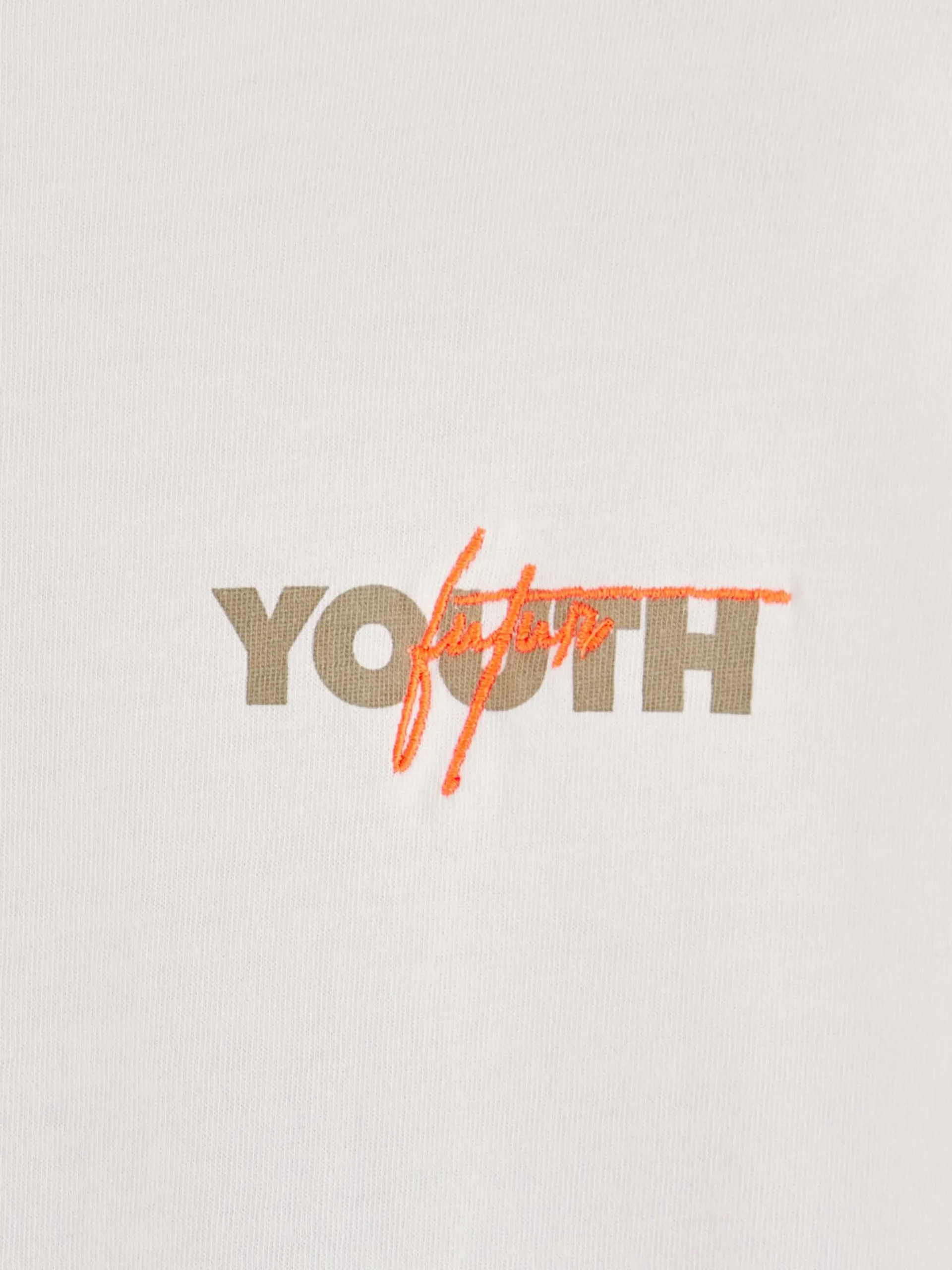 Comfortabel wit T-shirt van geborstelde katoenjersey met borduursel op de borst en een fotoprint op de rug.