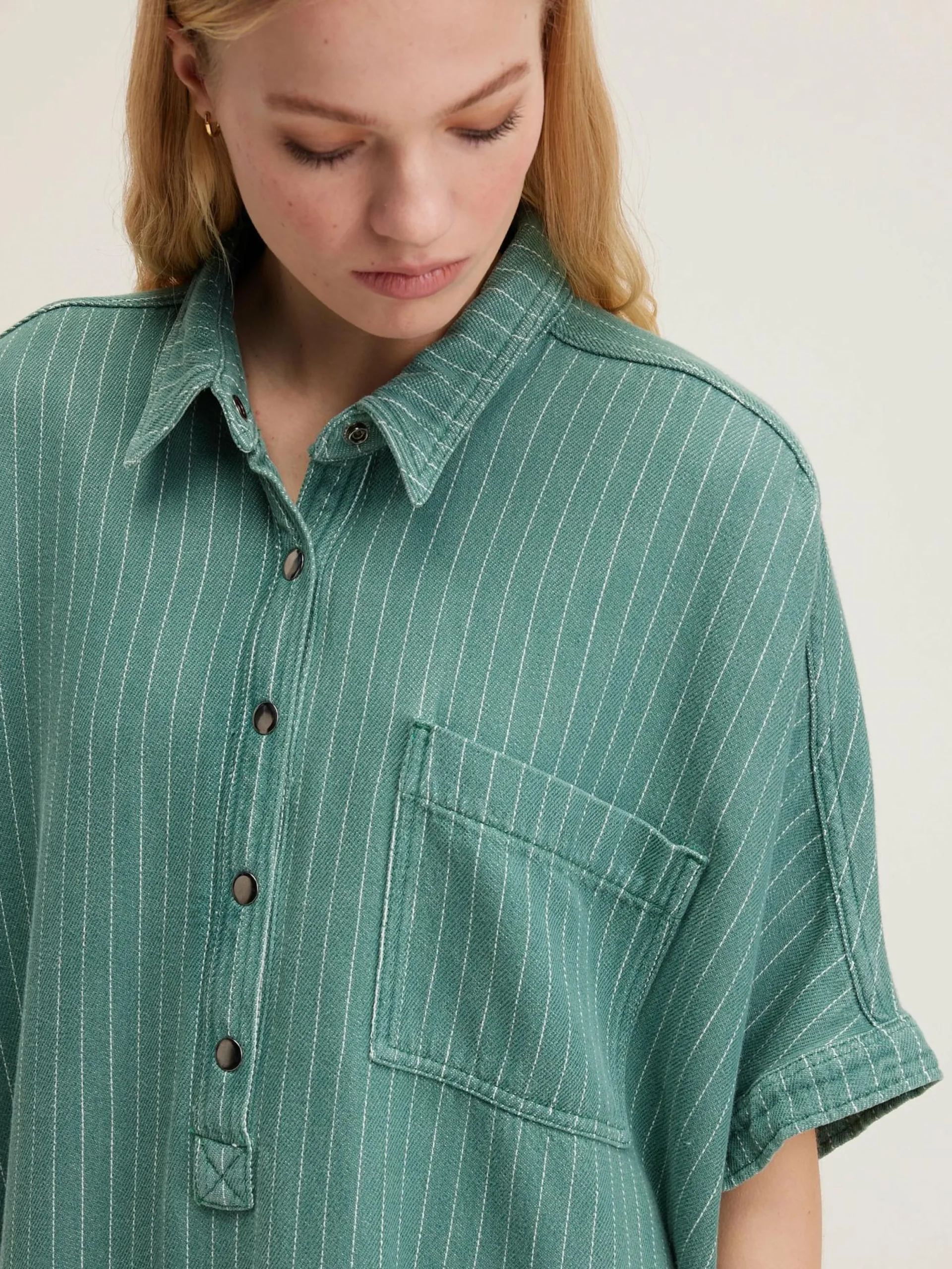 Oversizede hemdjurk van gestreept, licht stonewashed denim.