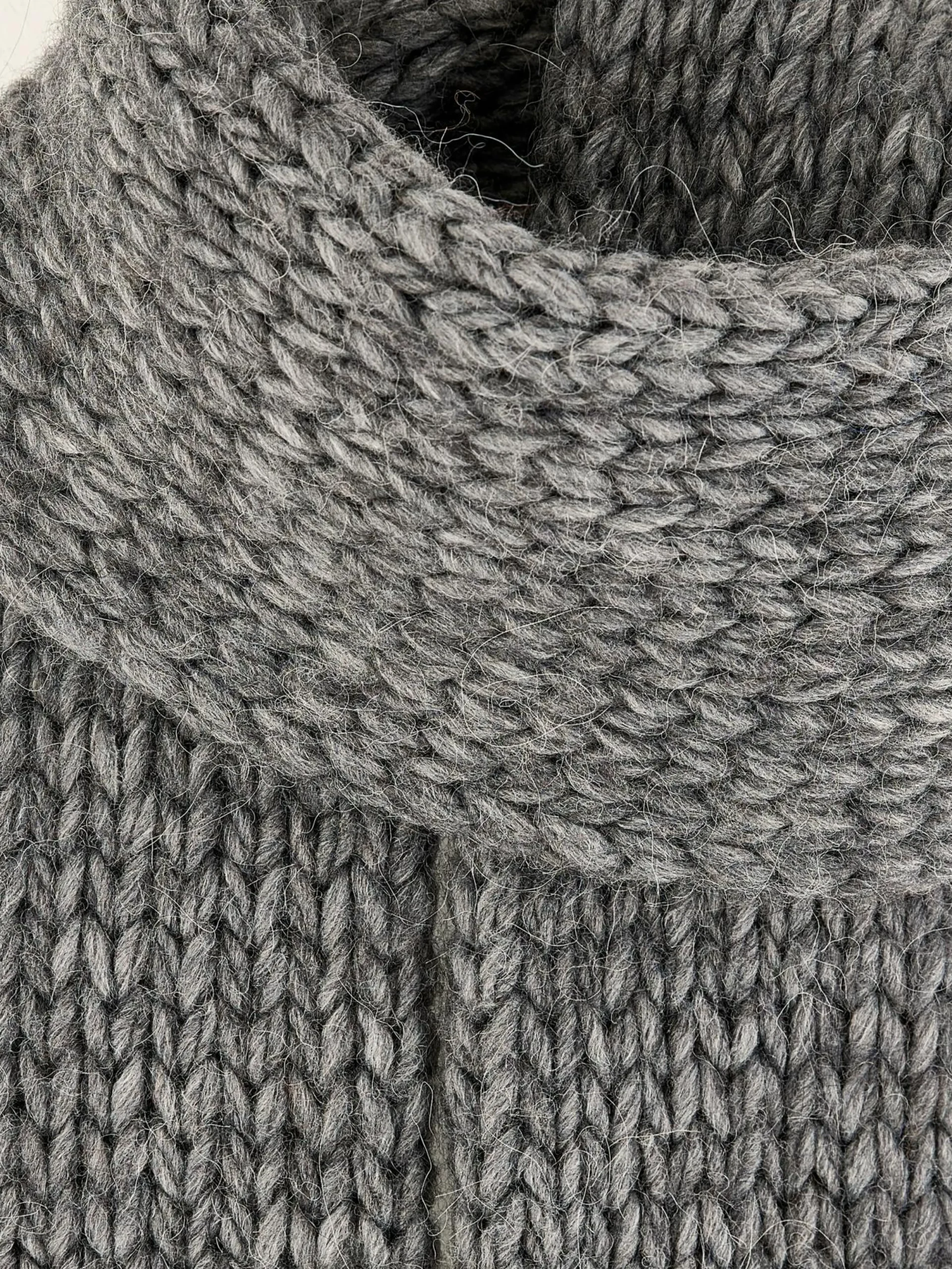 Middengrijze, jersey gebreide sjaal met dik garen.