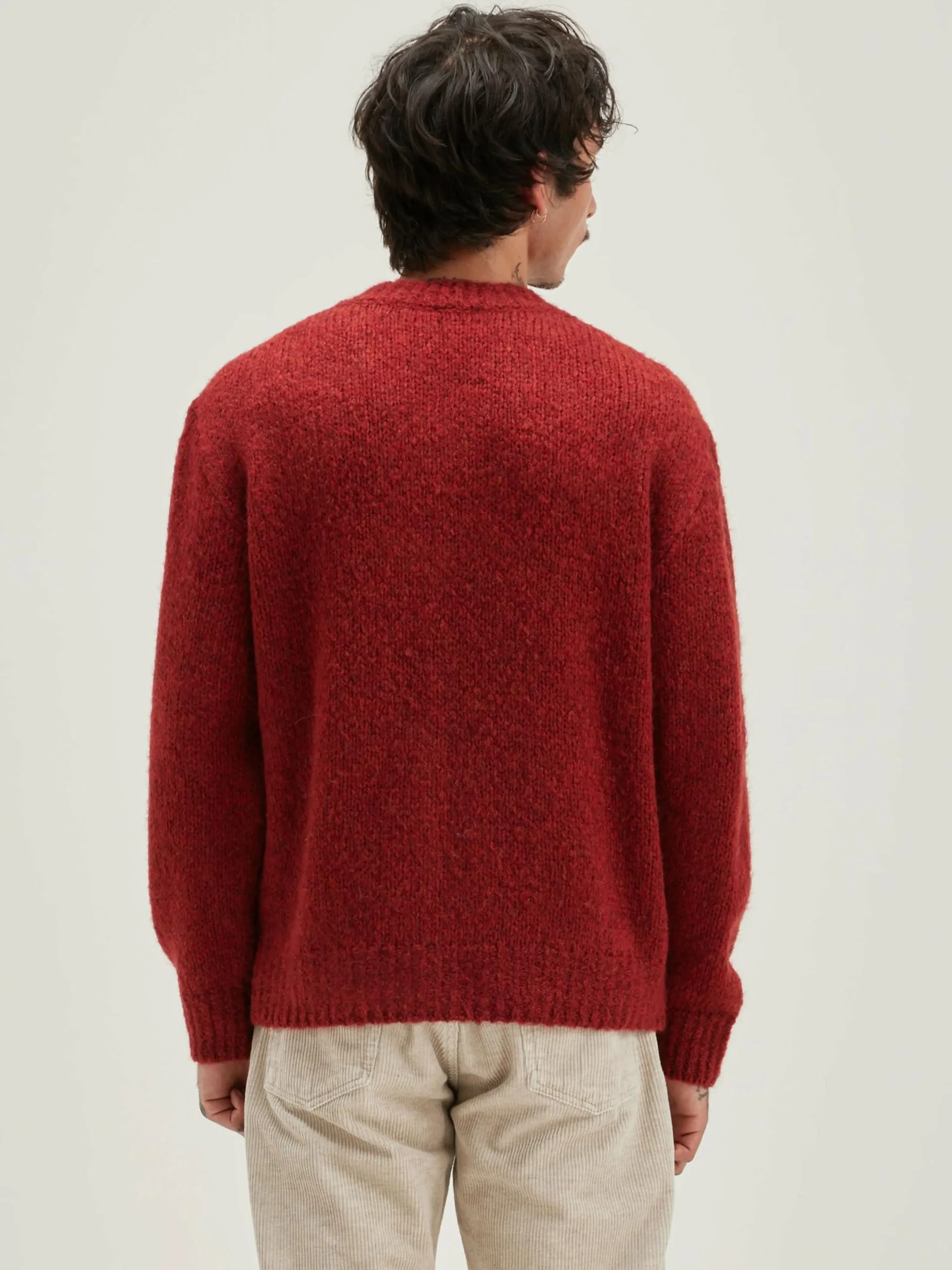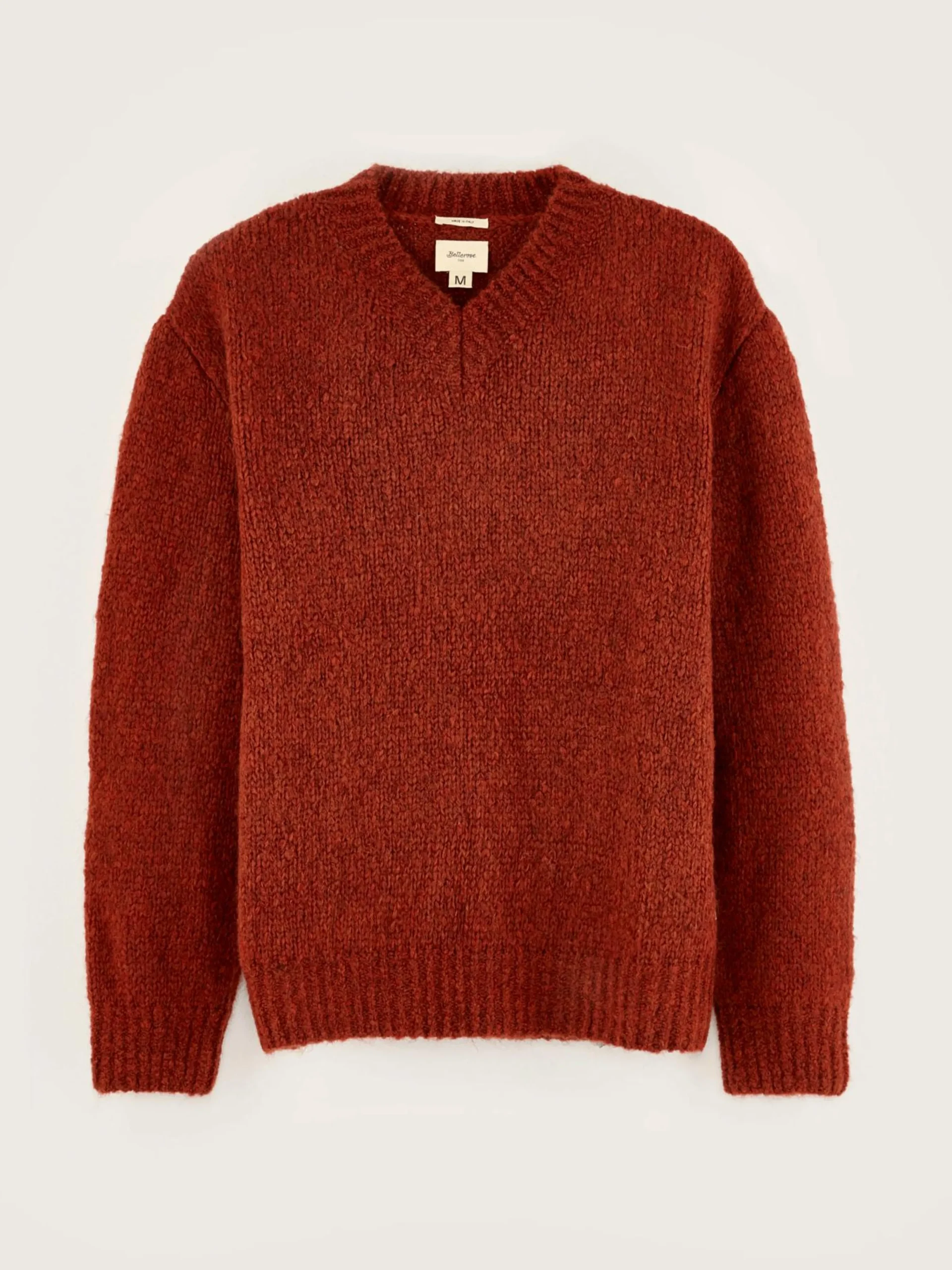 Comfortabele, mahoniebruine sweater met V-hals.